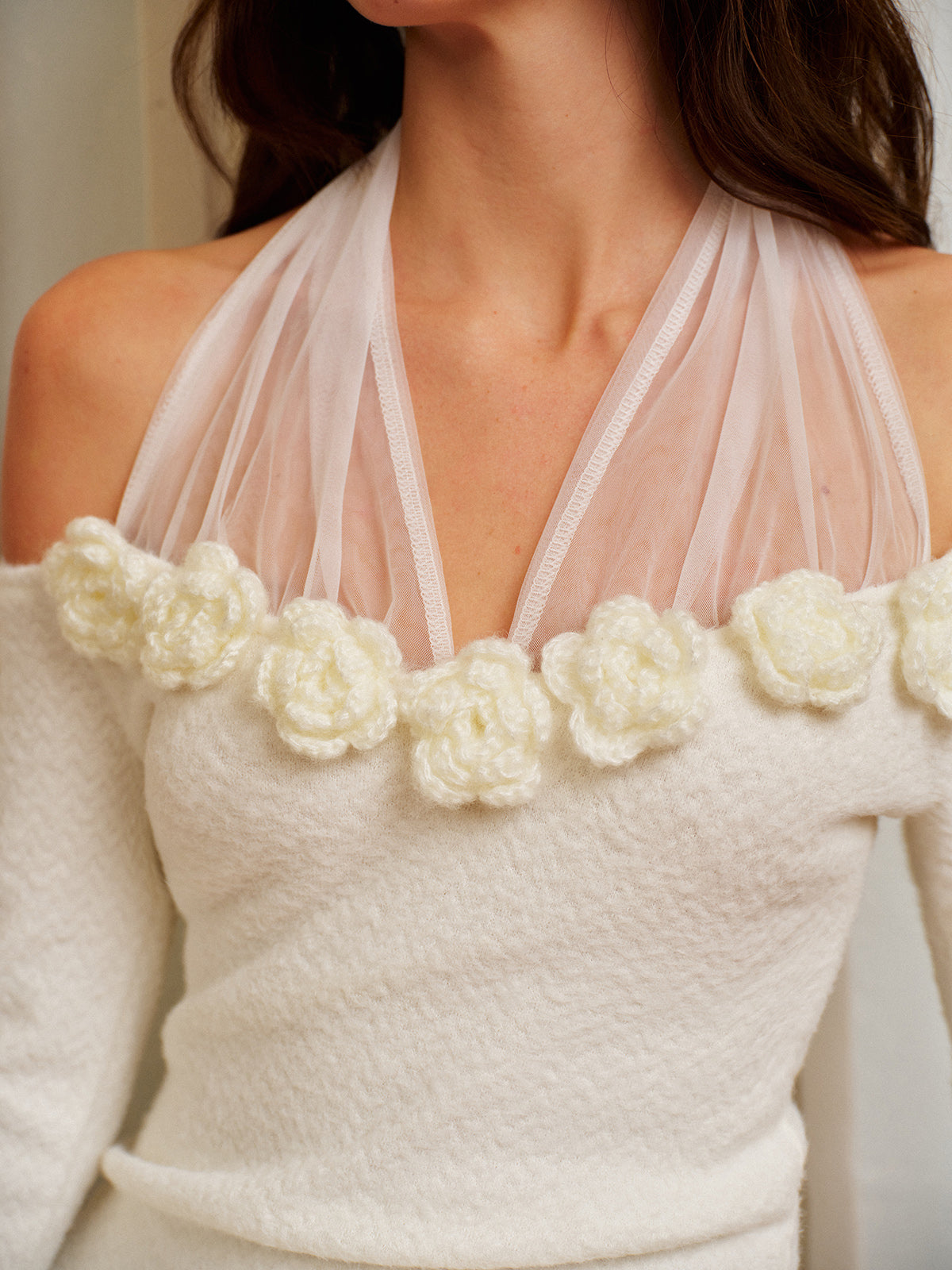3D Çiçekli Fiyonk Dekora Kazak Elbise