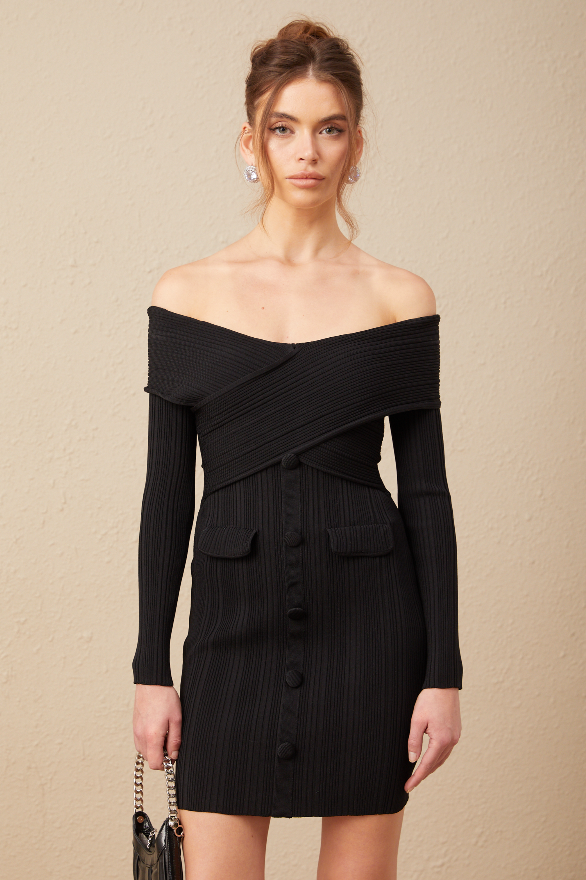 Alice Omuzsuz Ribana Triko Mini Elbise