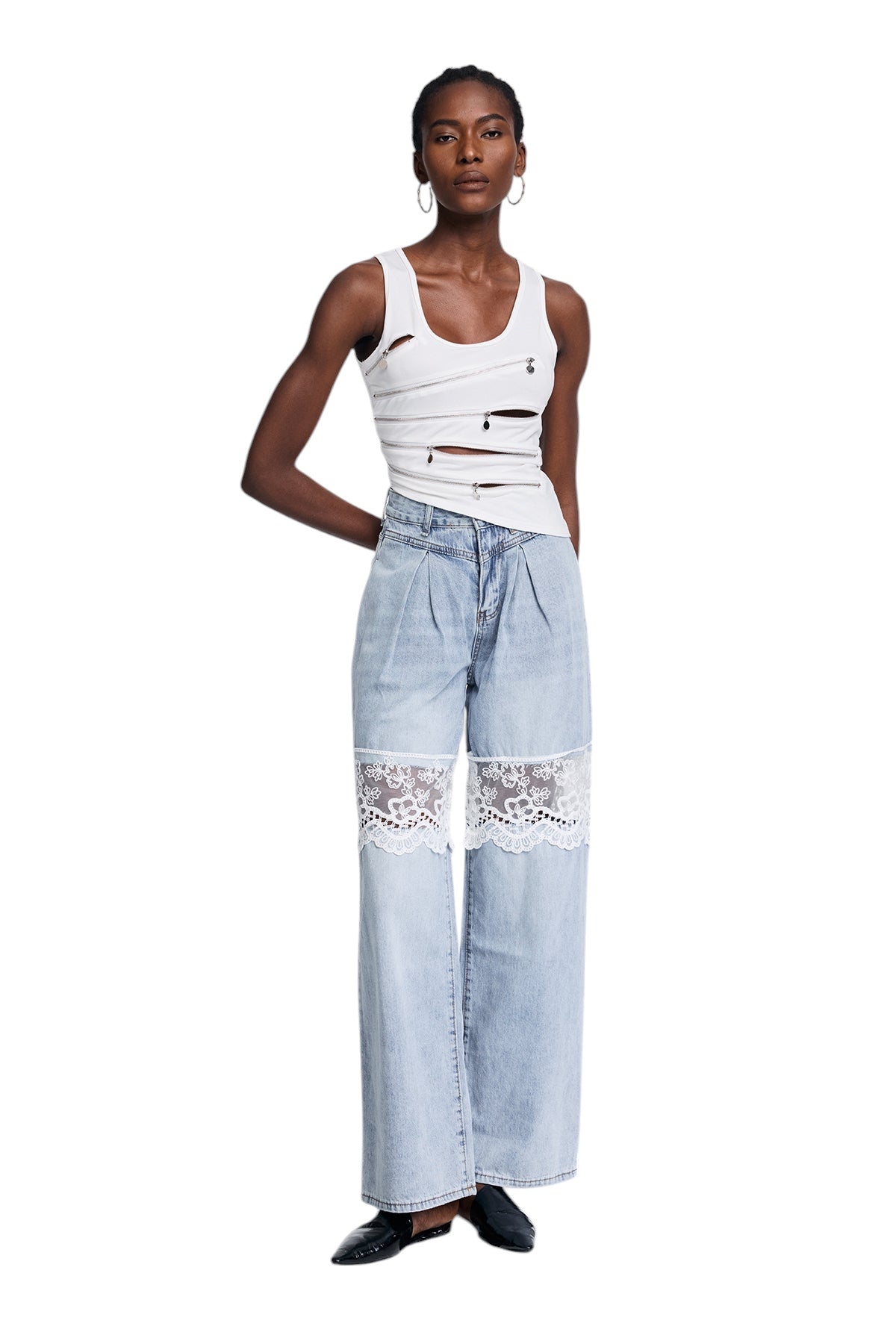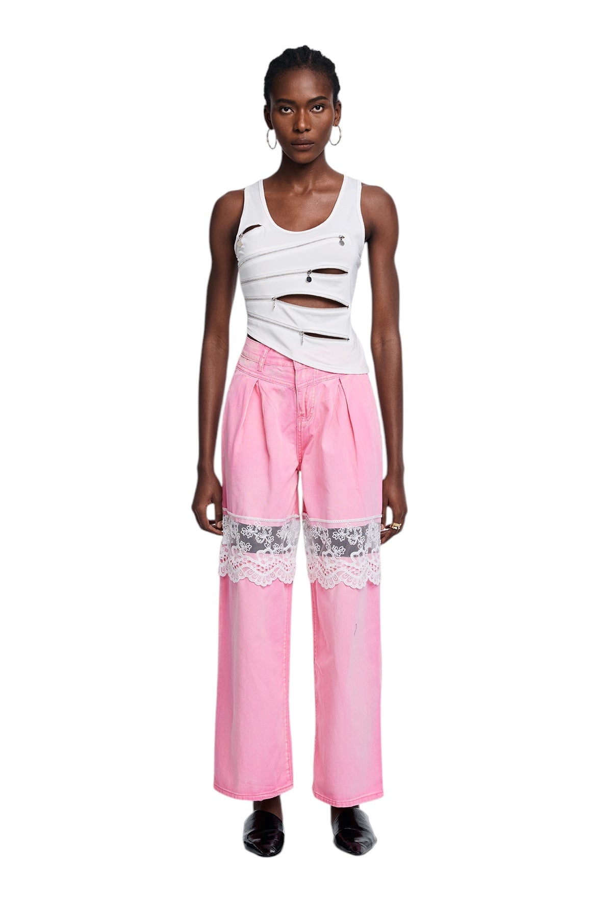 Her gardıroba şıklık ve çok yönlülük katan bir parça. Yüksek kaliteli kumaştan üretilen bu pantolonlar, cesur ve farklı bir tarz sunan özel boşluklu haç tasarımına sahiptir. Rahat kesimi ve vücuda oturan siluetiyle her ortam için mükemmel bir seçimdir. Gardırobunuza şık bir dokunuş getirecek.