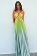 Bu zarif maksi elbise, askılı yaka ve pilili tasarıma sahip olup modern bir dokunuş katan göz alıcı kesik ayrıntılara sahiptir. Elastik bel kısmı güzel bir uyum sağlarken rahat hareket imkanı sağlar. Hafif esnek polyesterden yapılmış olup hem şıklık hem de rahatlık sunar.
