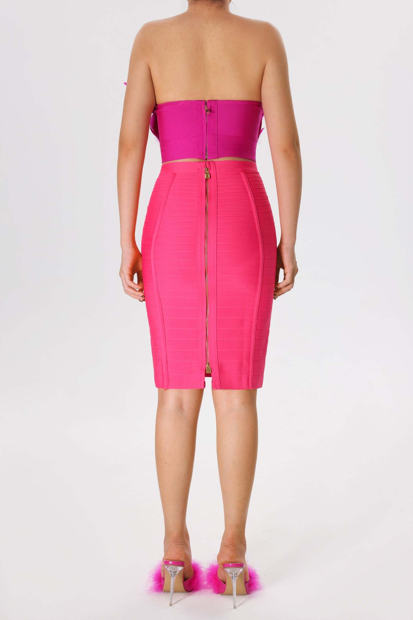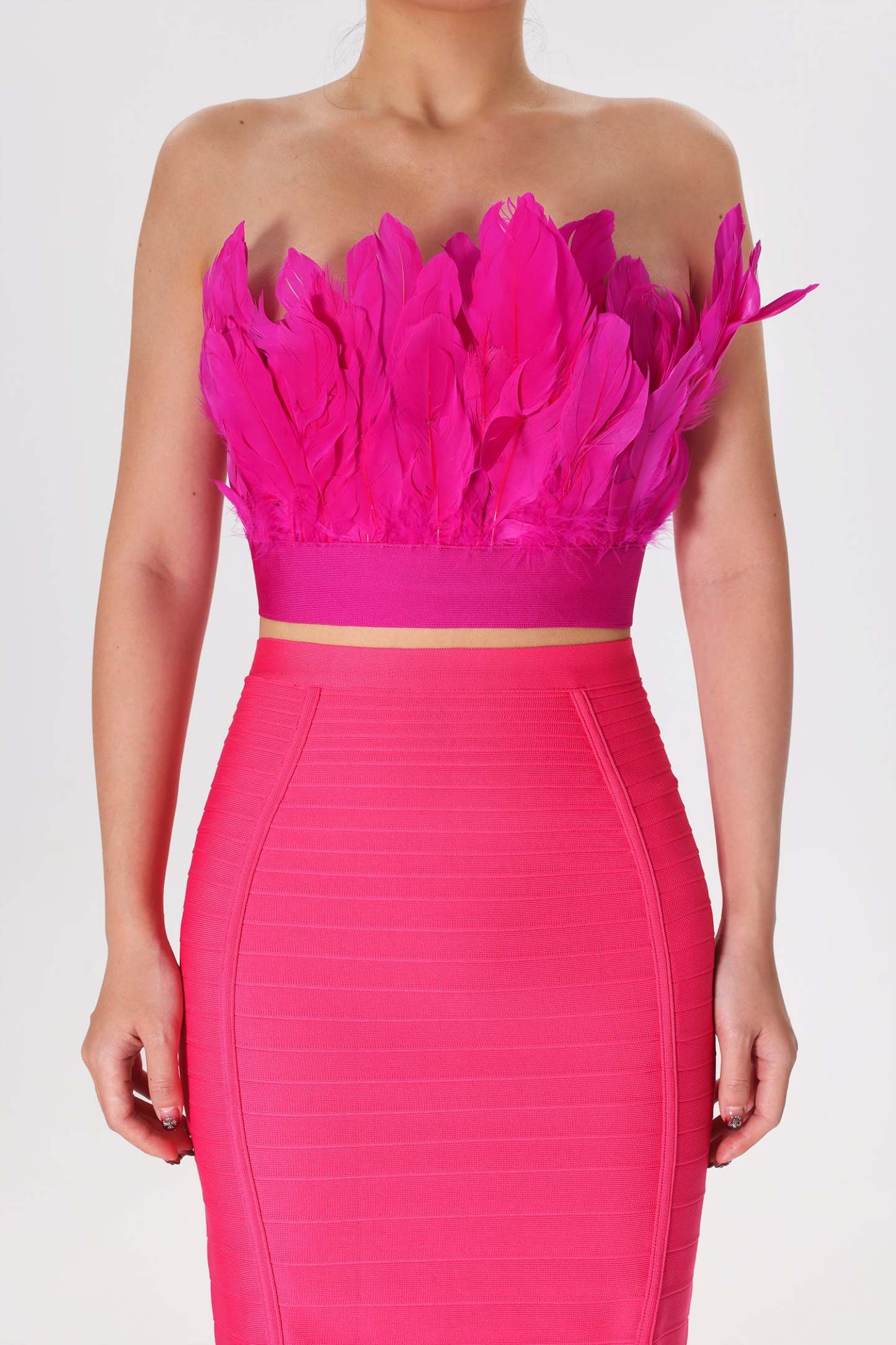 Bethany Tüy Detaylı Üst & Bandaj Etek, her mevsime uygun bir şıklık sunar. Özel tasarım bu iki parça, kadife yumuşaklığındaki polyester ile esnek spandeks'in muhteşem birlikteliğinden doğmuştur. Üst bölümde yer alan ipeksi tüy detaylar, geceleri ışıltınızı artırırken, sıkı oturan bandaj etek siluetinizi mükemmel bir şekilde sarar.
