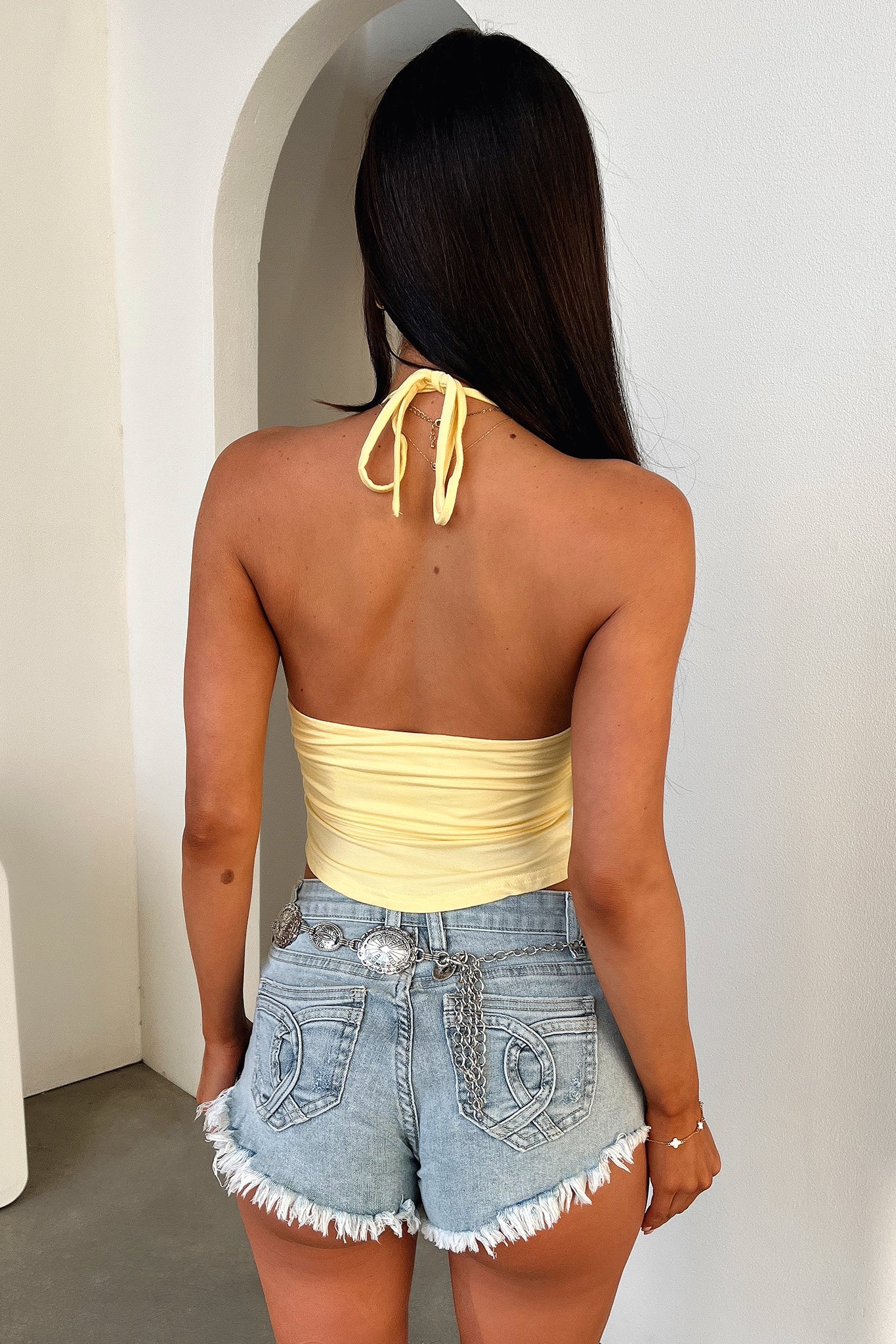 Bu şık kısa üst herkesin başını döndürecek! Calison Kısa Üst, halter boyun askıları, sivri üçgen etek ucu ve ortadaki kesim detayıyla öne çıkıyor. Çift astarlı kumaştan üretilen bu parça ile bir sonraki akşam yemeğinde harika görüneceksiniz - sadece bir jean ve topuklu ayakkabı ekleyin, tamamdır!