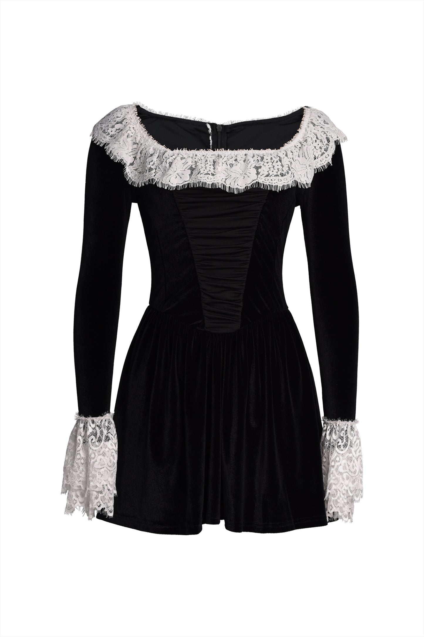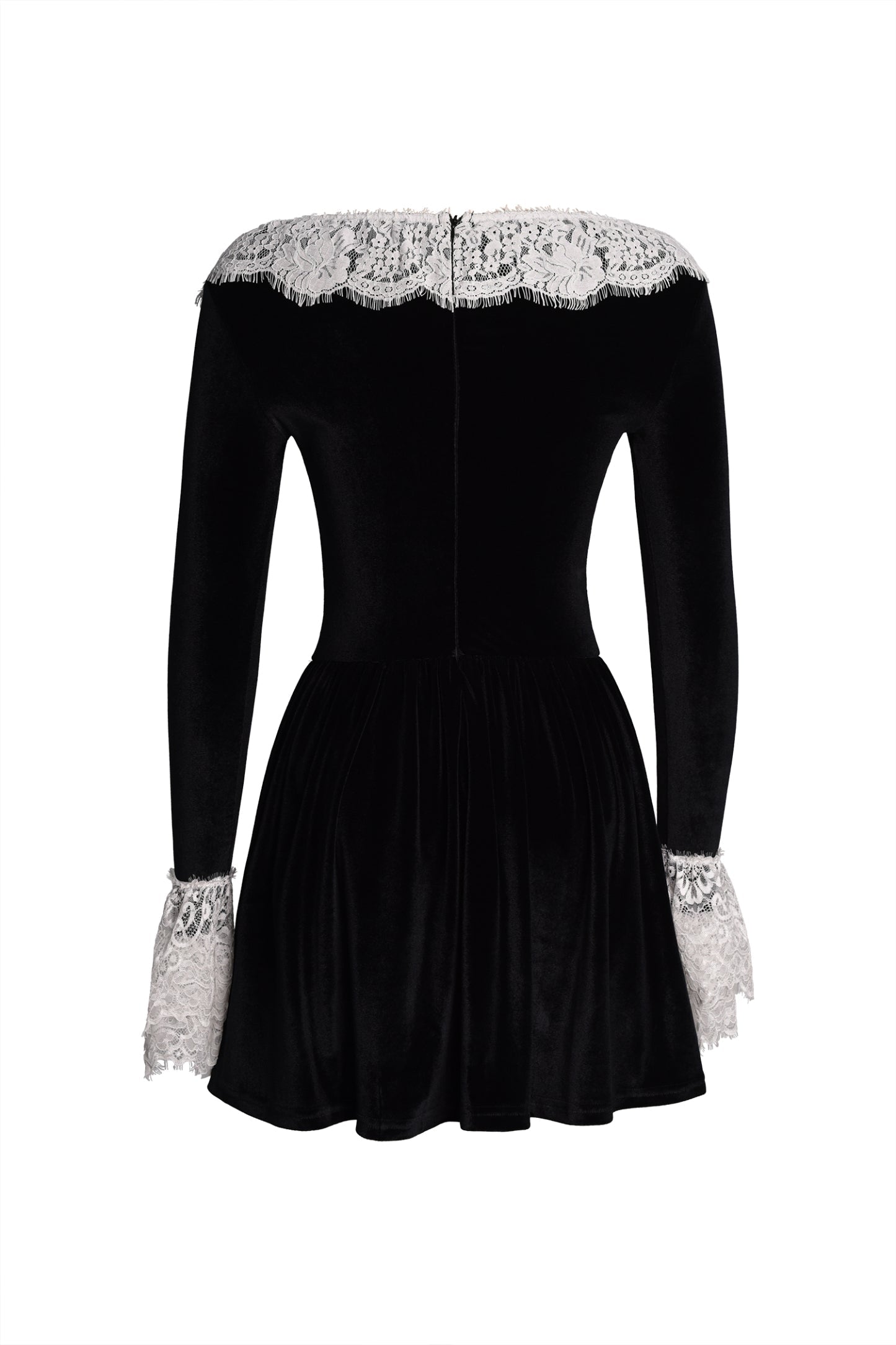Deirdre Uzun Kollu Dantelli Mini Elbise