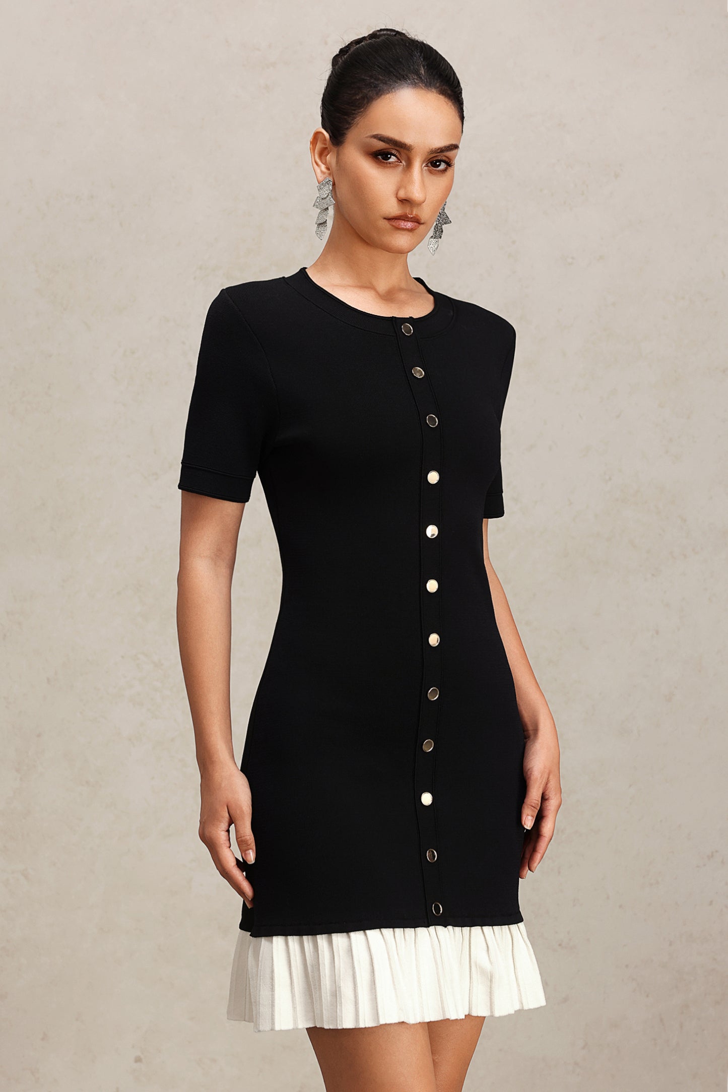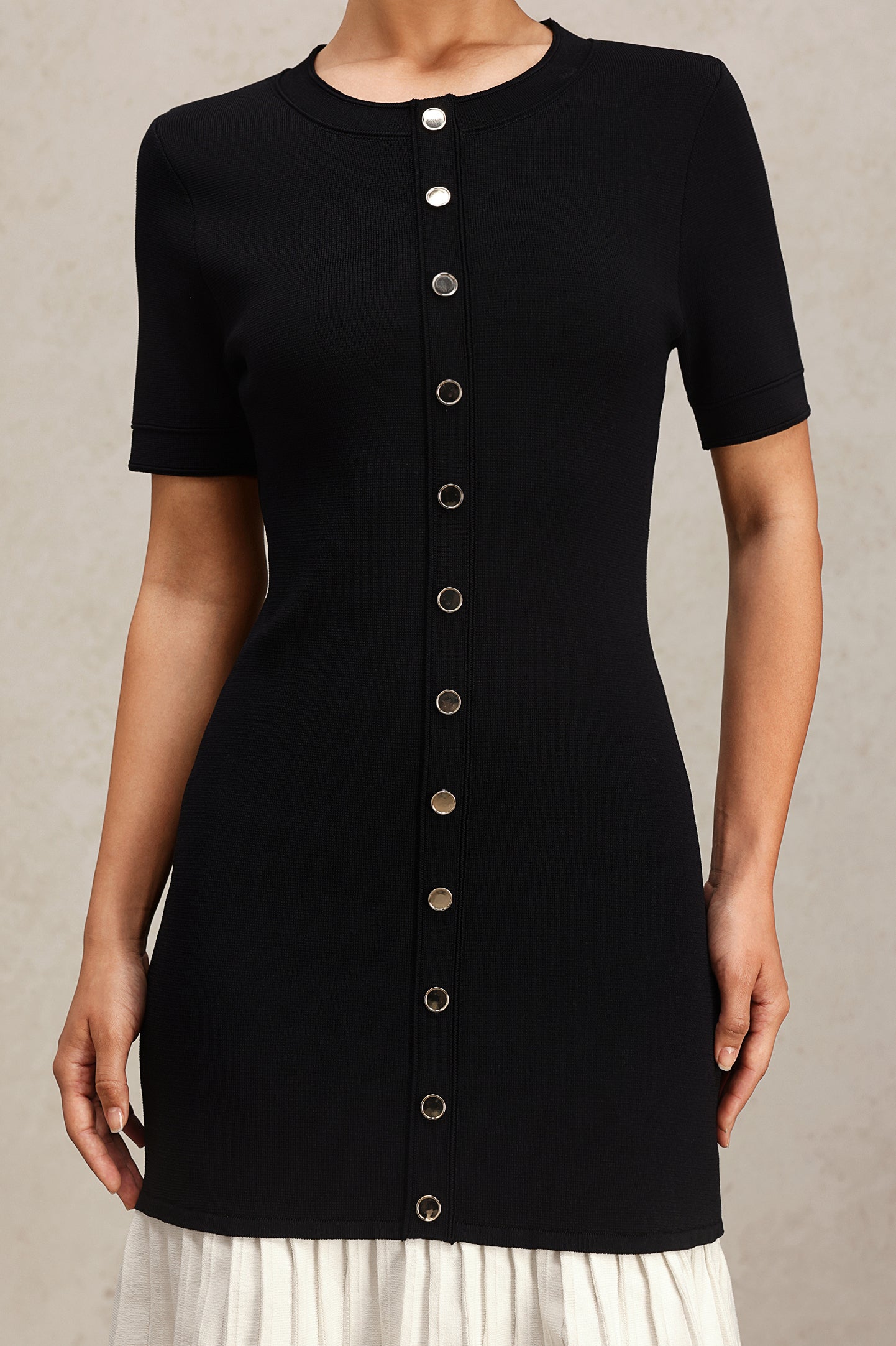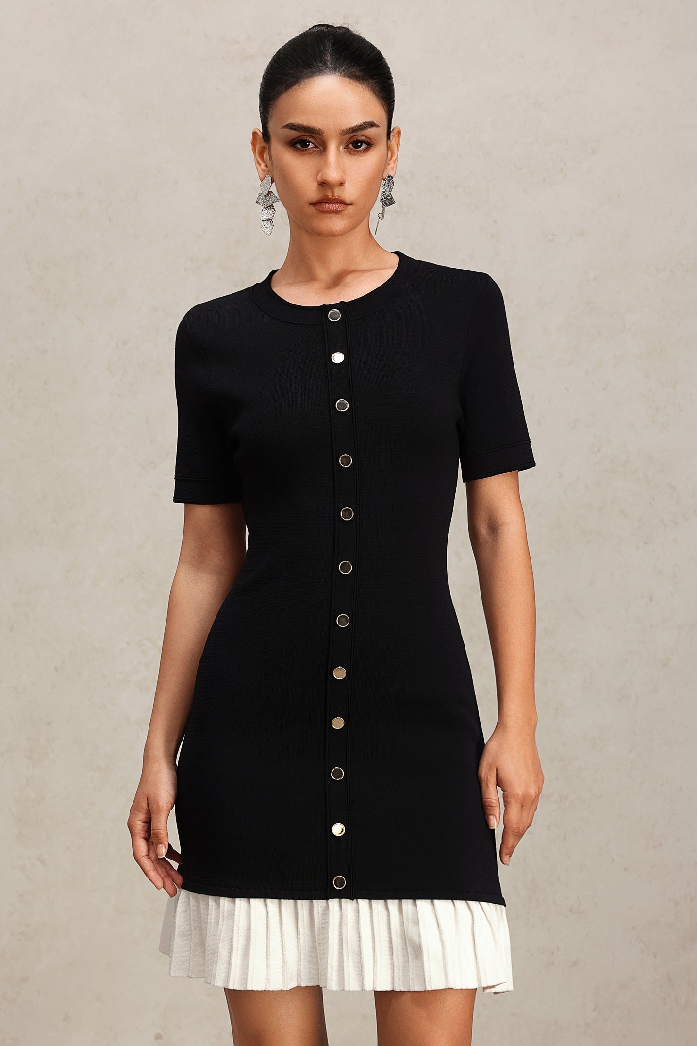 Delaney Yuvarlak Yaka Kısa Kollu Pilili Mini Elbise, özgün tasarımı ve şık dokunuşlarıyla dolabınızın vazgeçilmezi olmaya aday. Yüksek kaliteli kumaş yapısı, gün boyu konfor sunarken, esnekliği sayesinde hareket özgürlüğü sağlar. Yuvarlak yakası ve kısa kolları, sıcak yaz günlerinde ferahlık hissi verir. Pilili tasarımı, modern ve dinamik bir görünüm kazandırırken, mini boyu ile bacaklarınızı zarifçe sergiler.