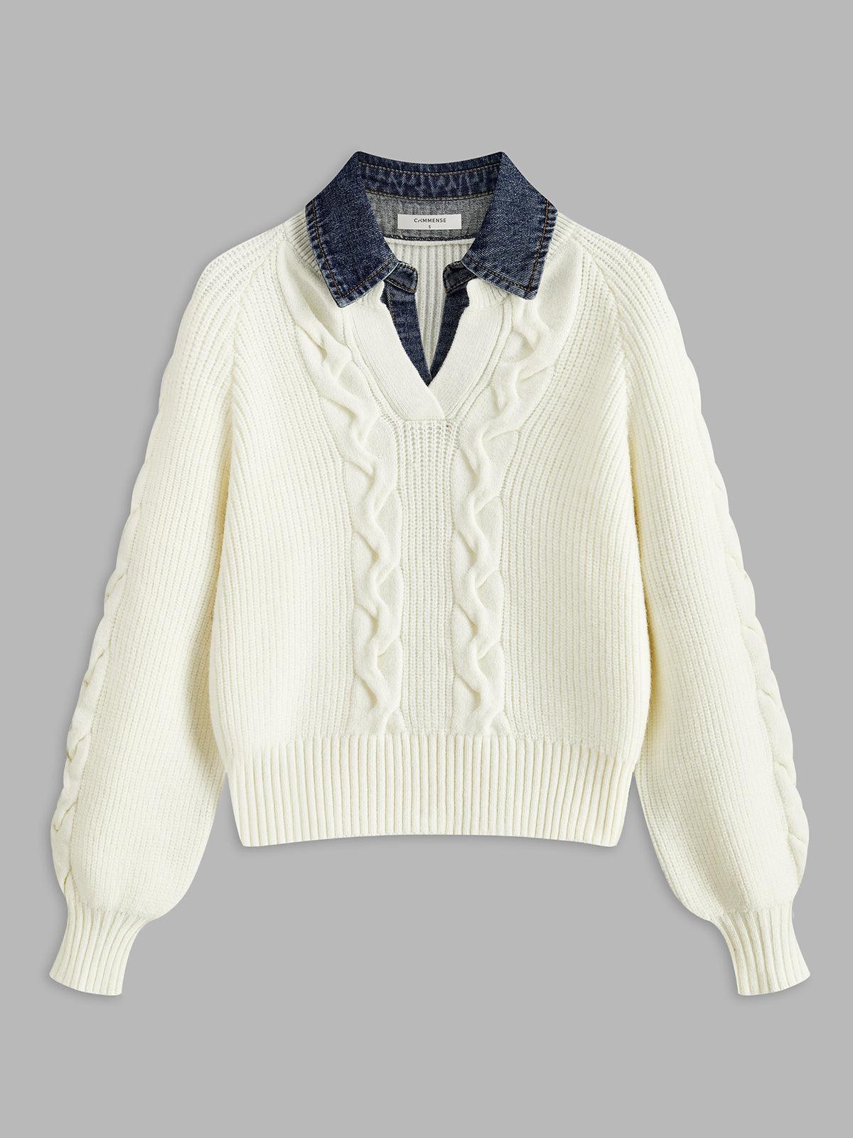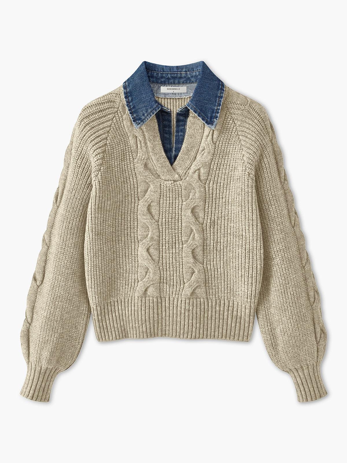 Şık örgü deseni ve denim yaka detaylarıyla modern bir tasarıma sahip gri kazak. Günlük şıklık için ideal olan bu kazak, sıcak ve rahat bir dokuyla stilinizi tamamlar. Hem casual kombinler hem de özel anlar için mükemmel bir tercih!