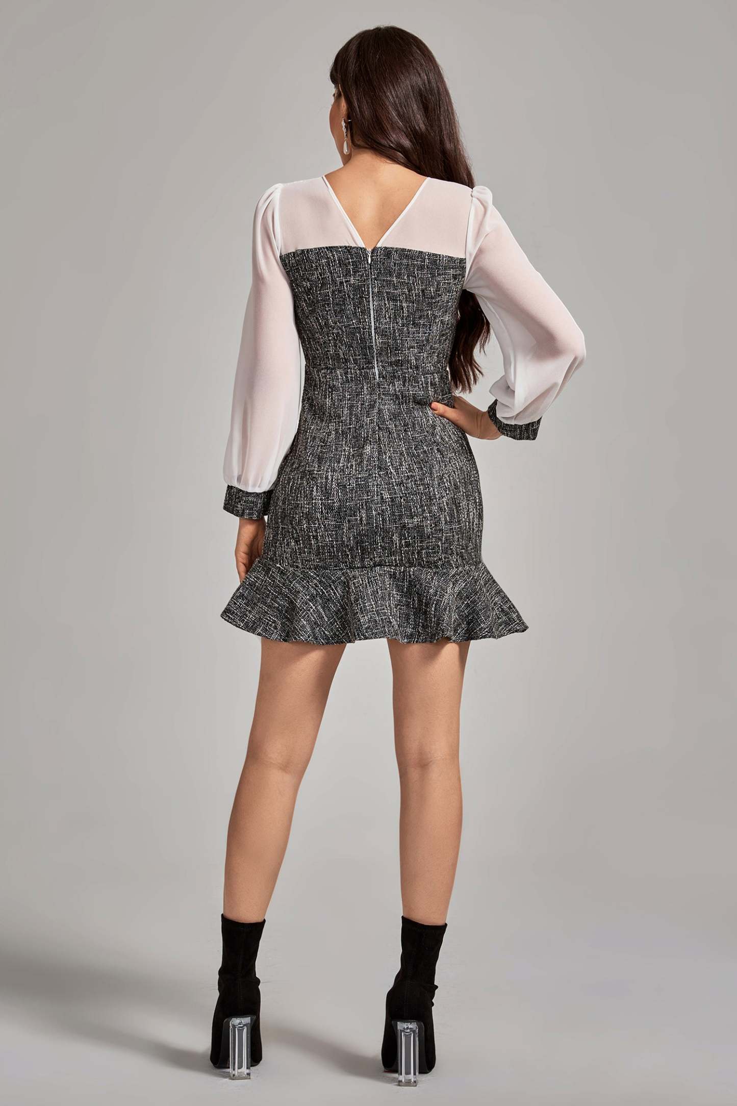 Diane Şifon Yama Detaylı Volanlı Mini Elbise,