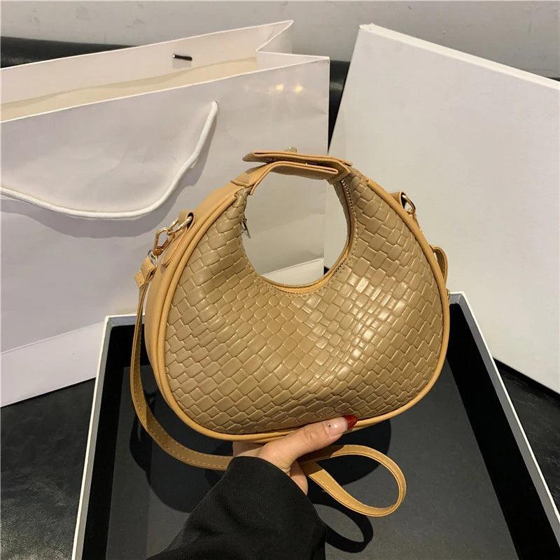 Bu benzersiz yuvarlak el çantası, kıyafetinize lüks ve zamansız bir his katan göz alıcı bir dokuma dokuya sahiptir. Kompakt ancak geniş bir iç kısımla tasarlanan bu çanta, günlük ihtiyaçlarınızı şık bir şekilde taşımak için mükemmeldir. Zarif dairesel sapı ve çıkarılabilir omuz askısı, hem elde hem de çapraz askılı kullanım için çok yönlü olmasını sağlar ve her durum için konfor ve sofistike bir görünüm sunar.