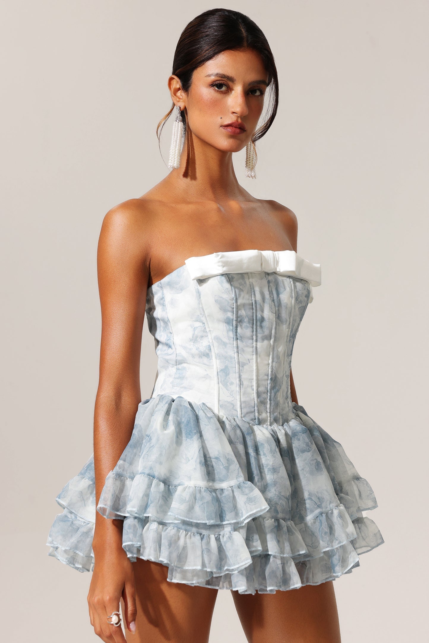 Çarpıcı bir stil sunan Dolo Çiçek Desenli Bağcıklı Mini Elbise, özgün tasarımı ve rahat kullanımı ile öne çıkıyor. Zarif çiçek desenleri ve dikkat çekici bağcıklı tasarımı, bu elbiseyi gece davetleri ve şık akşam yemekleri için ideal kılıyor. Esnek kumaş yapısı, gün boyu konfor ve mükemmel uyumu garanti ederken, mini boyu ile feminen bir siluet sunar.