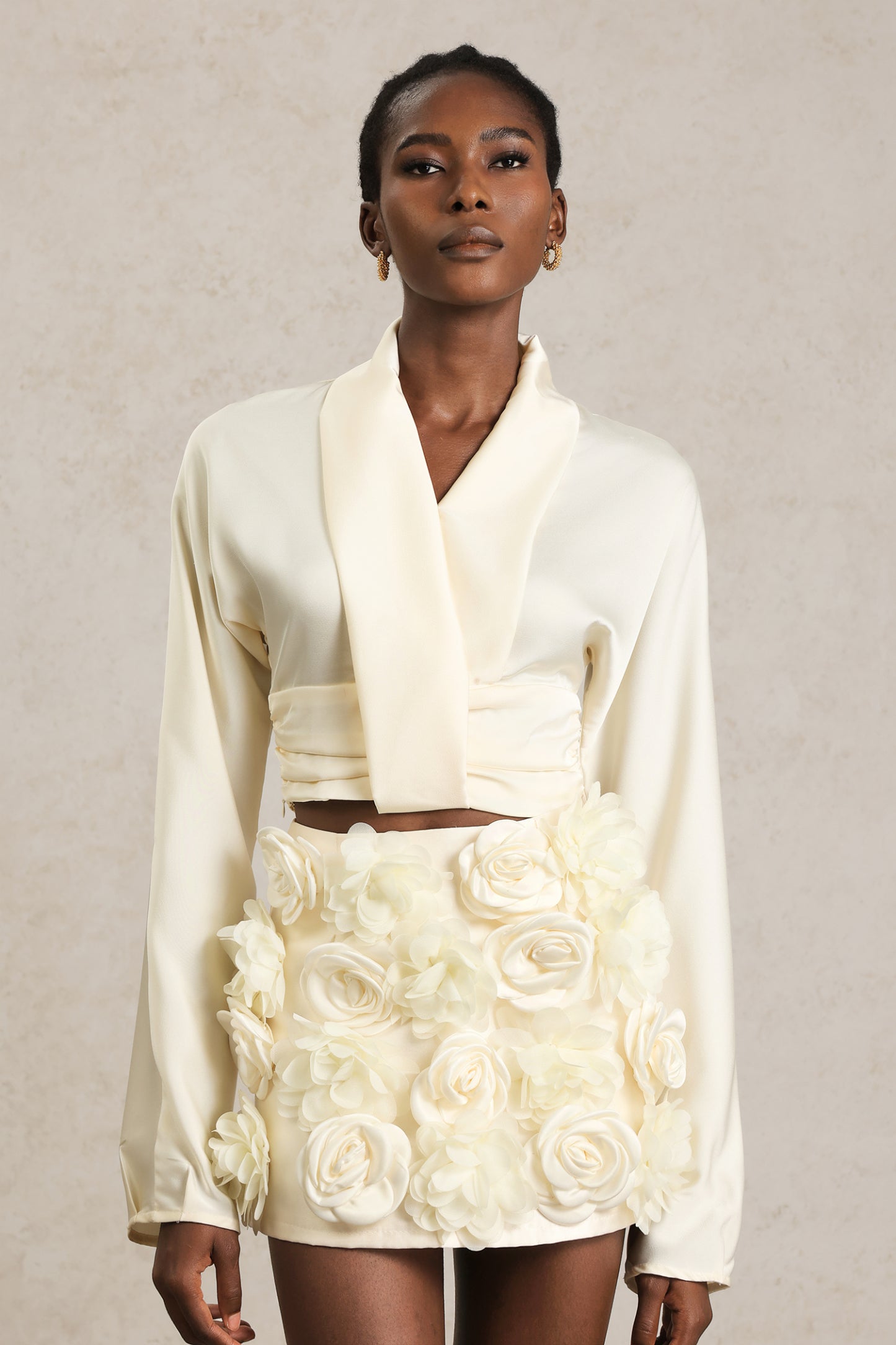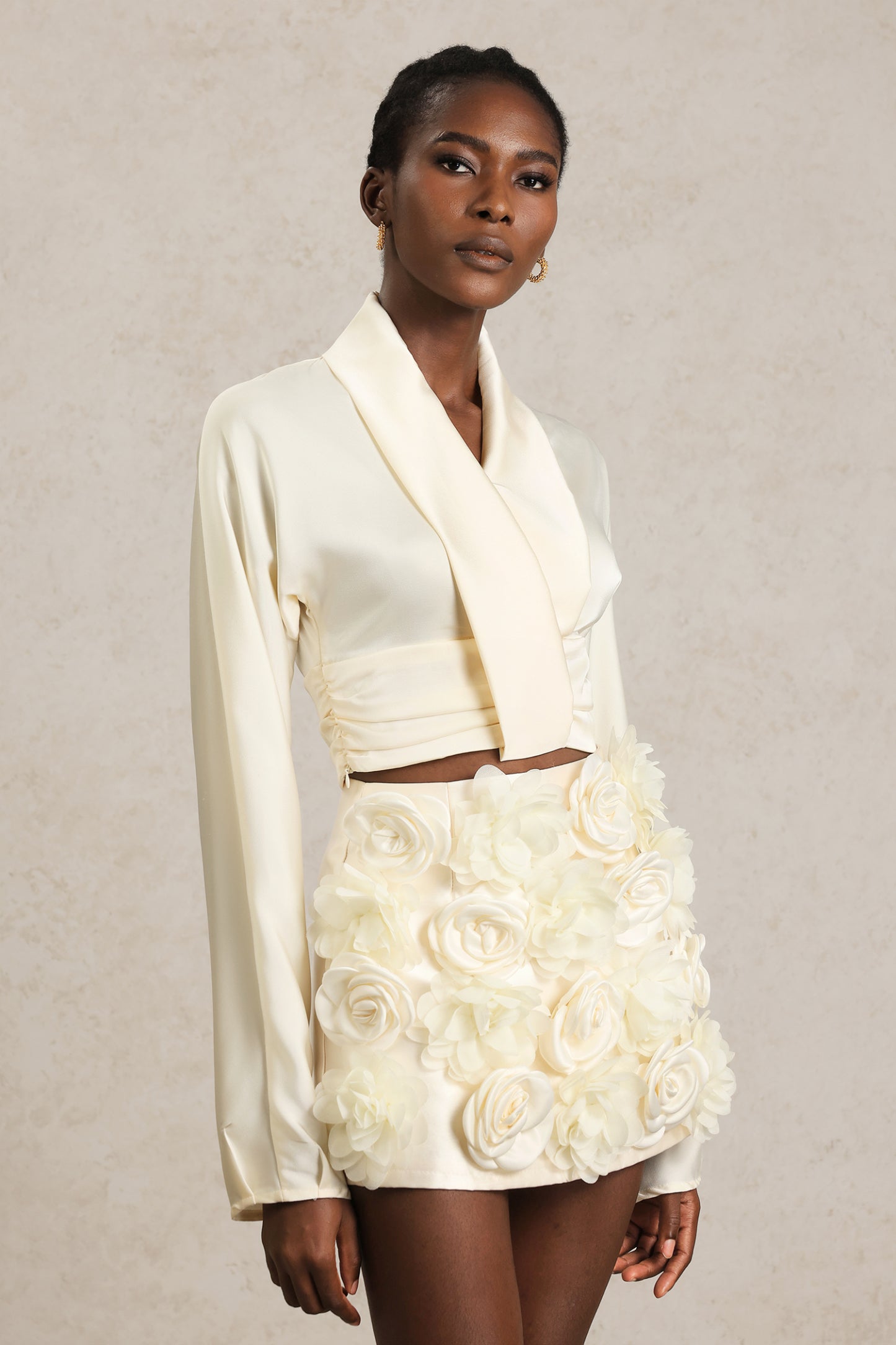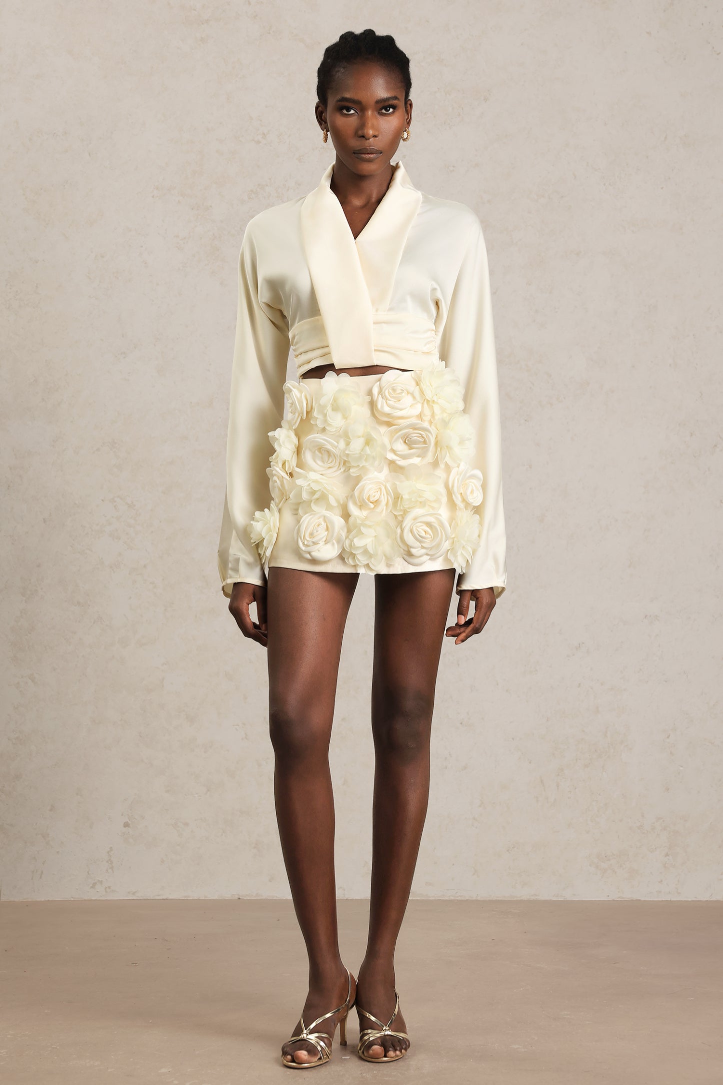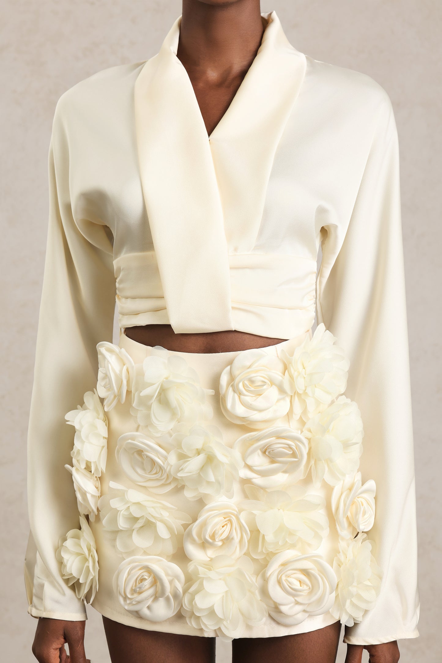 Dulio V Yaka Uzun Kollu Çiçek Desenli Üst ve Etek İkili Set