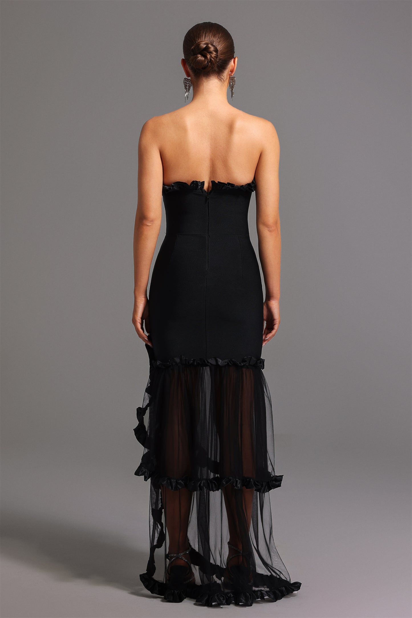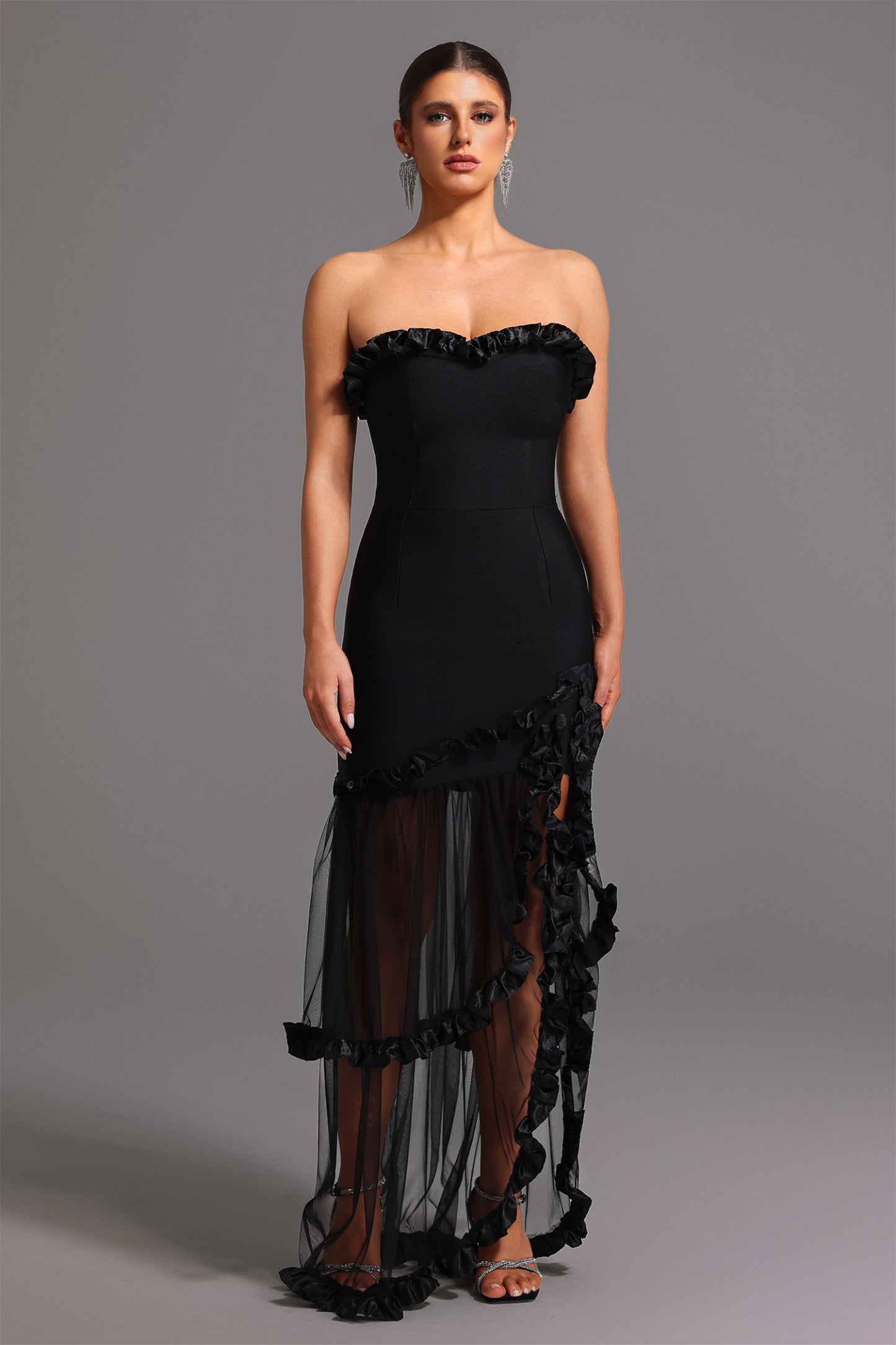 Edmee Bağcıklı Straplez Yırtmaçlı Maxi Elbise