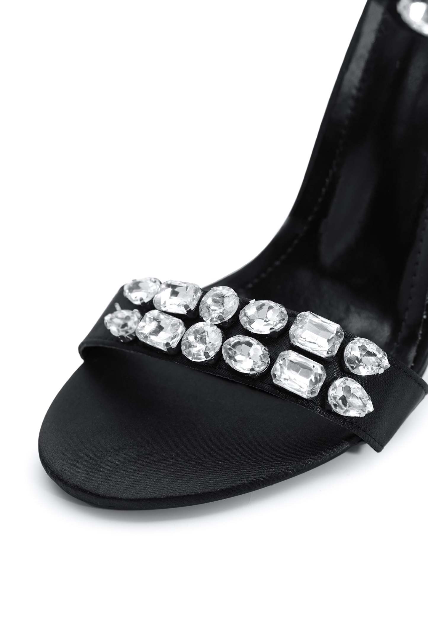 Eka Taş Detaylı Bilek Bağcıklı Stiletto Sandalet, zarif gece davetlerinden, şık plaj partilerine kadar her ortamda göz kamaştırır. Üst kısmı ipeksi dokulu kumaştan üretilmiş olan bu sandalet, uzun süreli kullanım rahatlığı sunar. Kauçuk tabanı sayesinde kaygan zeminlerde dahi üstün tutuş sağlar.