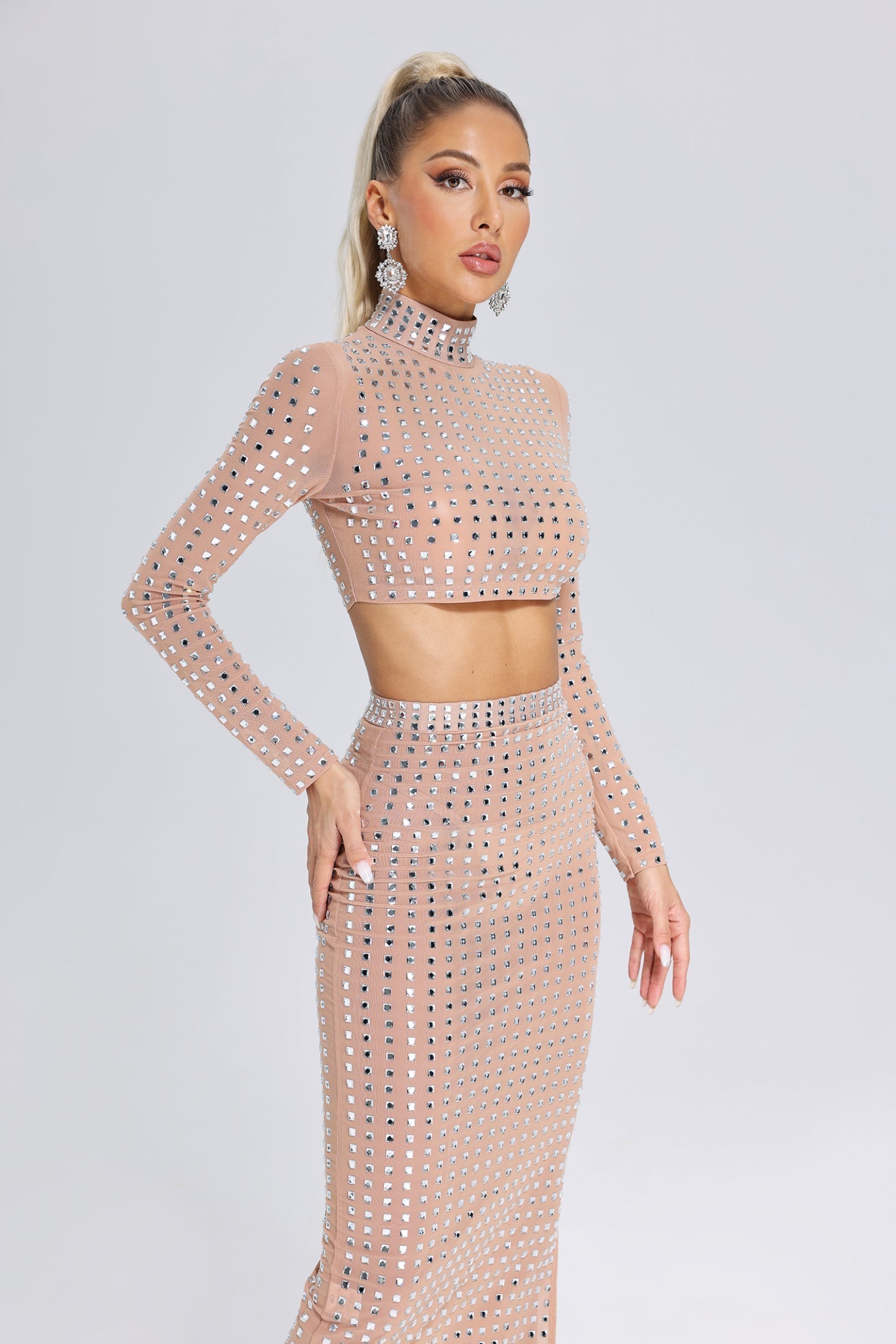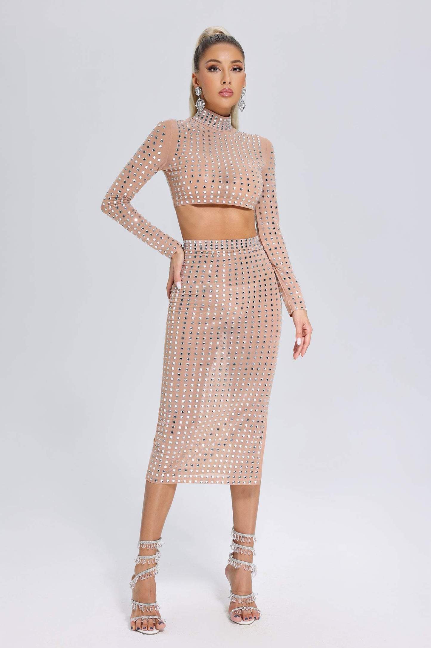 Bu çarpıcı set, davetlerde veya özel gecelerde tüm gözleri üzerinizde toplamanızı sağlayacak. Bağcıklı detaylar ve taş işlemeleri ile göz kamaştırın.