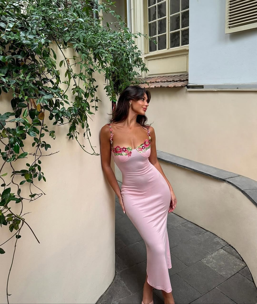 Ruhunuzu hafiflik ve zarafetle saracak Esne Çiçek Desenli Halter Yaka Pembe Maxi Elbise ile tanışın! Özel tasarım bu elbise, omuz kayışlarında yer alan narin çiçek işlemeleri ile göz alıcı bir siluet sunar. Romantik bir çekicilik yayarak özel davetler için biçilmiş kaftan. İnce altın takılar ve ince bantlı sandaletlerle tamamlayarak şıklığınızı taçlandırın.