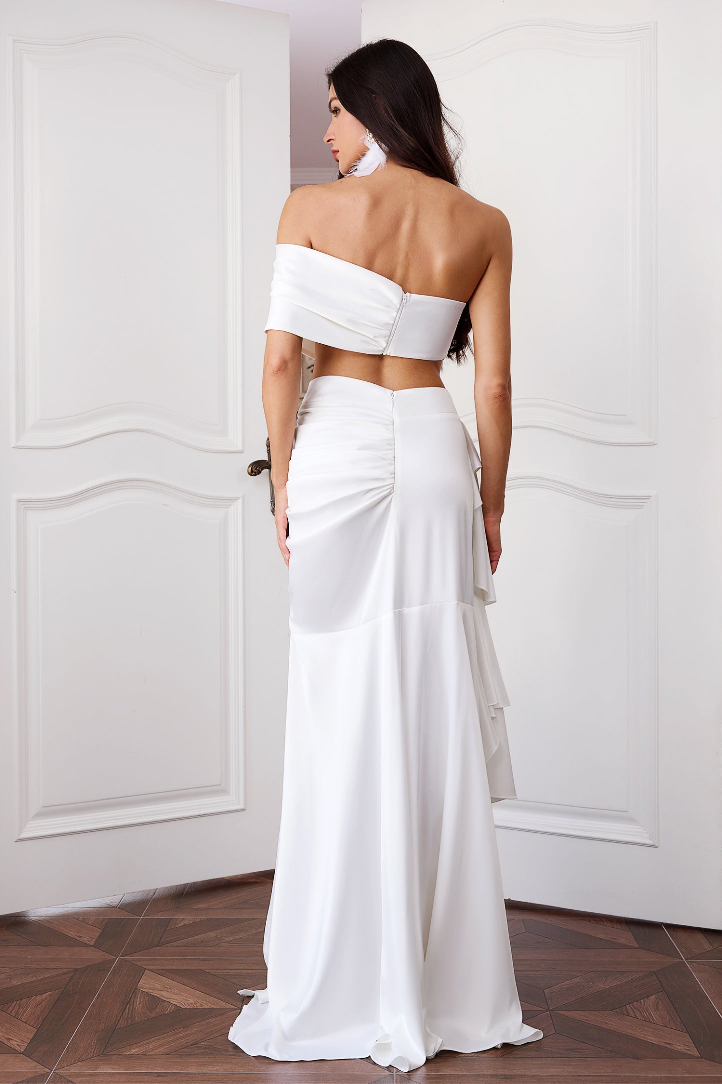 Esther Çiçek Desenli Saten Takım - Beyaz şıklık ve zarafeti bir arada sunar. Clara Fonet Atelier koleksiyonumuzdan gelen bu özel tasarım, sizi göz alıcı kılan ince detaylar ve üstün işçilikle bezeli. Modelimiz S beden giymektedir.