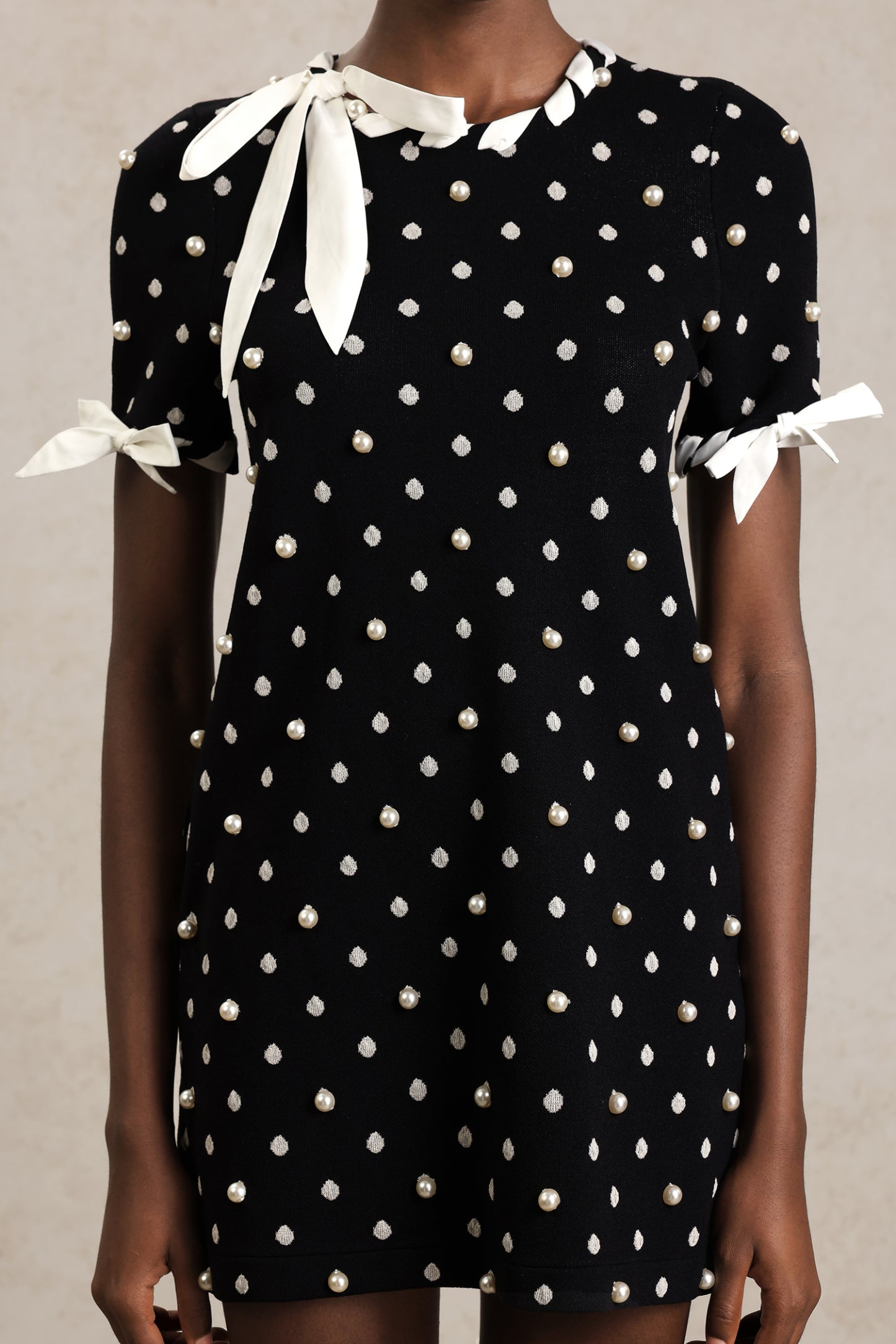 Falae Yuvarlak Yaka Nokta Desenli Mini Elbise