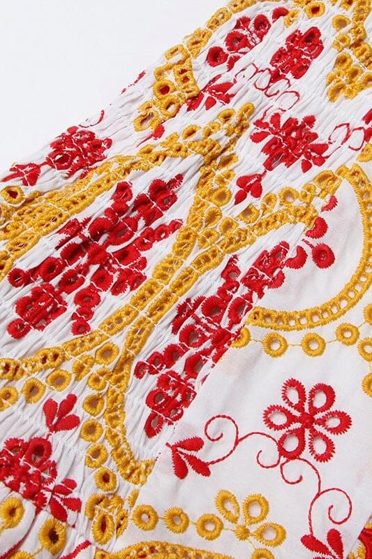 Bu A kesim mini elbise, şık ve eğlenceli bir görünüm için katmanlı fırfırlı etek ucuna ve açık sırt kısmına sahiptir. Pamuk ve polyester karışımından üretilen vücuda oturan tasarım, rahatlık için hafif esnek bir uyum sunar.