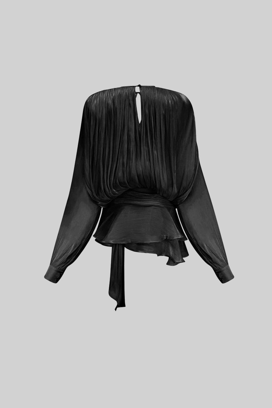 Siyah Fırfırlı Uzun Kollu Mini Elbise – Akıcı Siluetli