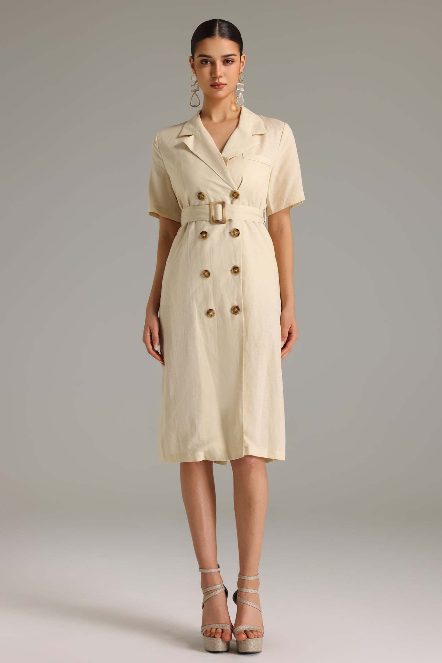 Elbisenin zarif düğmeli kemer detayı belinizi sararak feminen bir profil çizmenize yardımcı olurken, keten ve tencel karışımı kumaş hem konfor hem de şıklığı bir arada sunar. Giada Elbisenizle, etkileyici bir görünüm elde edebilirsiniz.