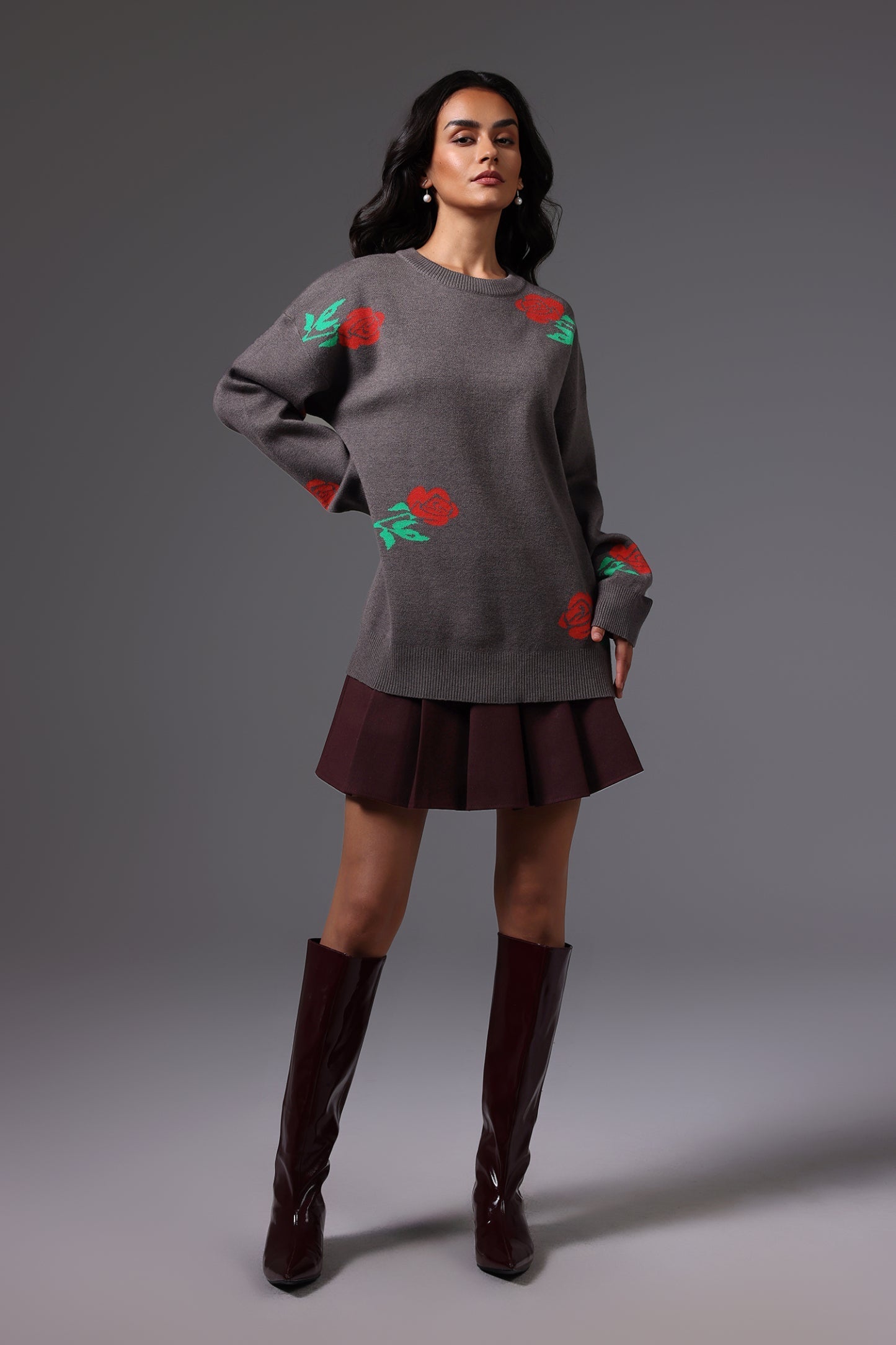 Kazak, modelin üzerindeki S bedenle mükemmel uyum sağlıyor. Modelin boyu 174 cm, göğüs çevresi 83 cm, bel çevresi 61 cm ve kalça çevresi 90 cm ölçülerinde. Ürün, çiçek desenleriyle bütünleşen yuvarlak yaka tasarımı sayesinde gündüzden geceye her türlü ortamda sizi en iyi şekilde temsil eder.