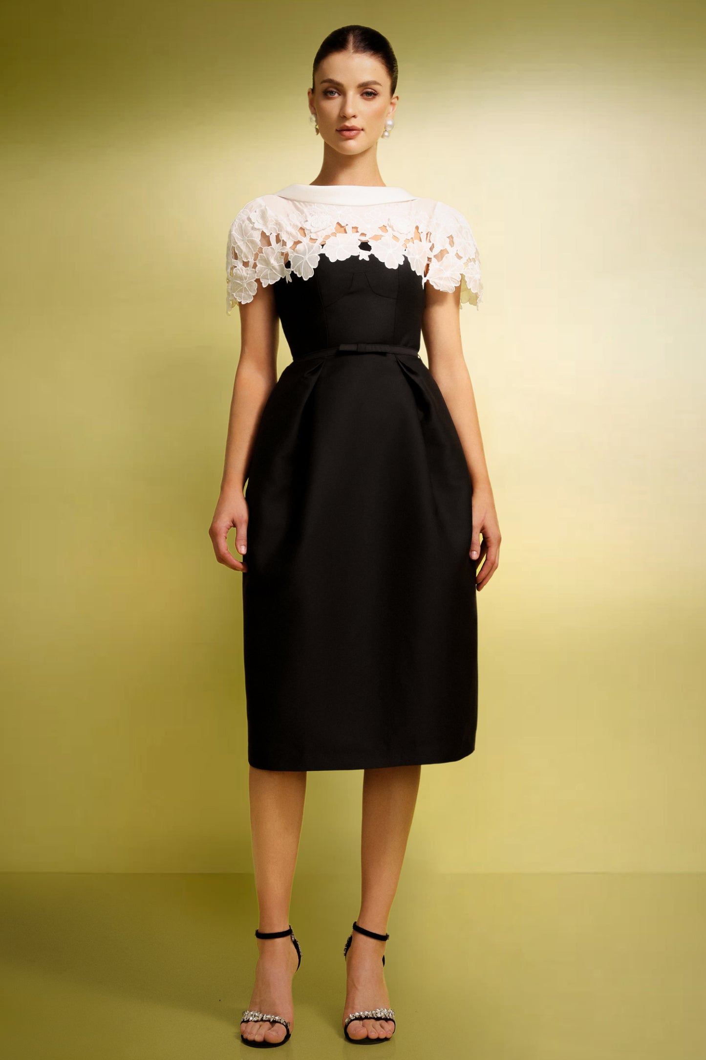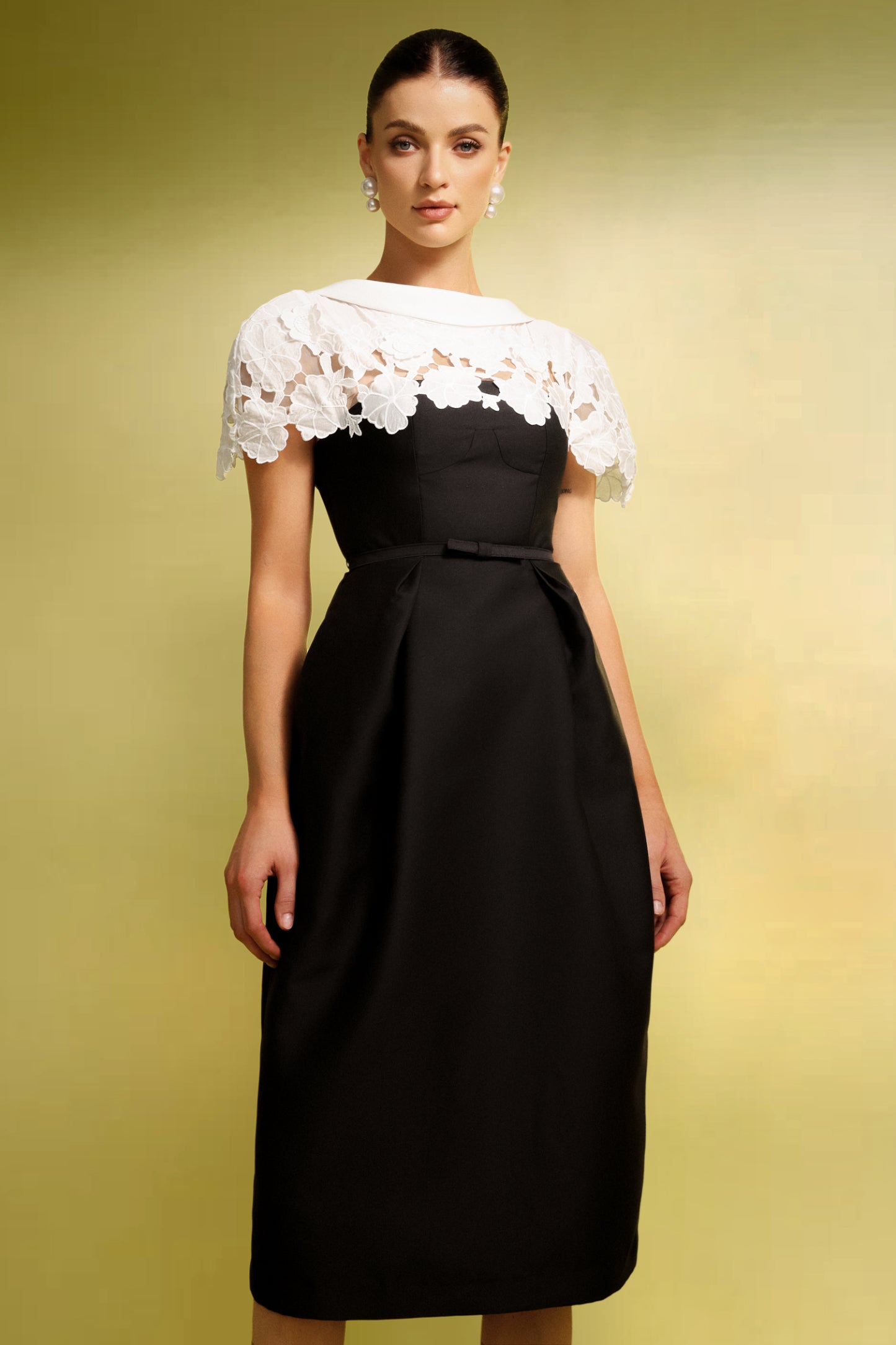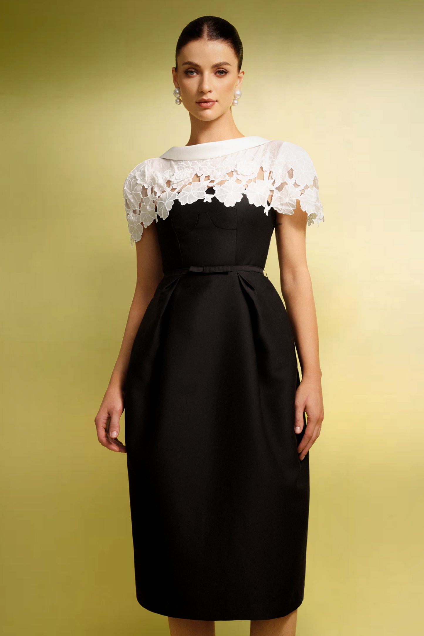 Bu özel üretim midi elbise, kısa kolları ve zarif çiçek işlemeleriyle göz kamaştırıyor. Hem gece şıklığına hem de gündüz rahatlığına uyum sağlayacak esnek kumaş yapısı ile her mekan ve davet için ideal bir tercih. Resimlerdeki aydınlatmadan dolayı renklerde küçük farklılıklar oluşabileceğini unutmayın.