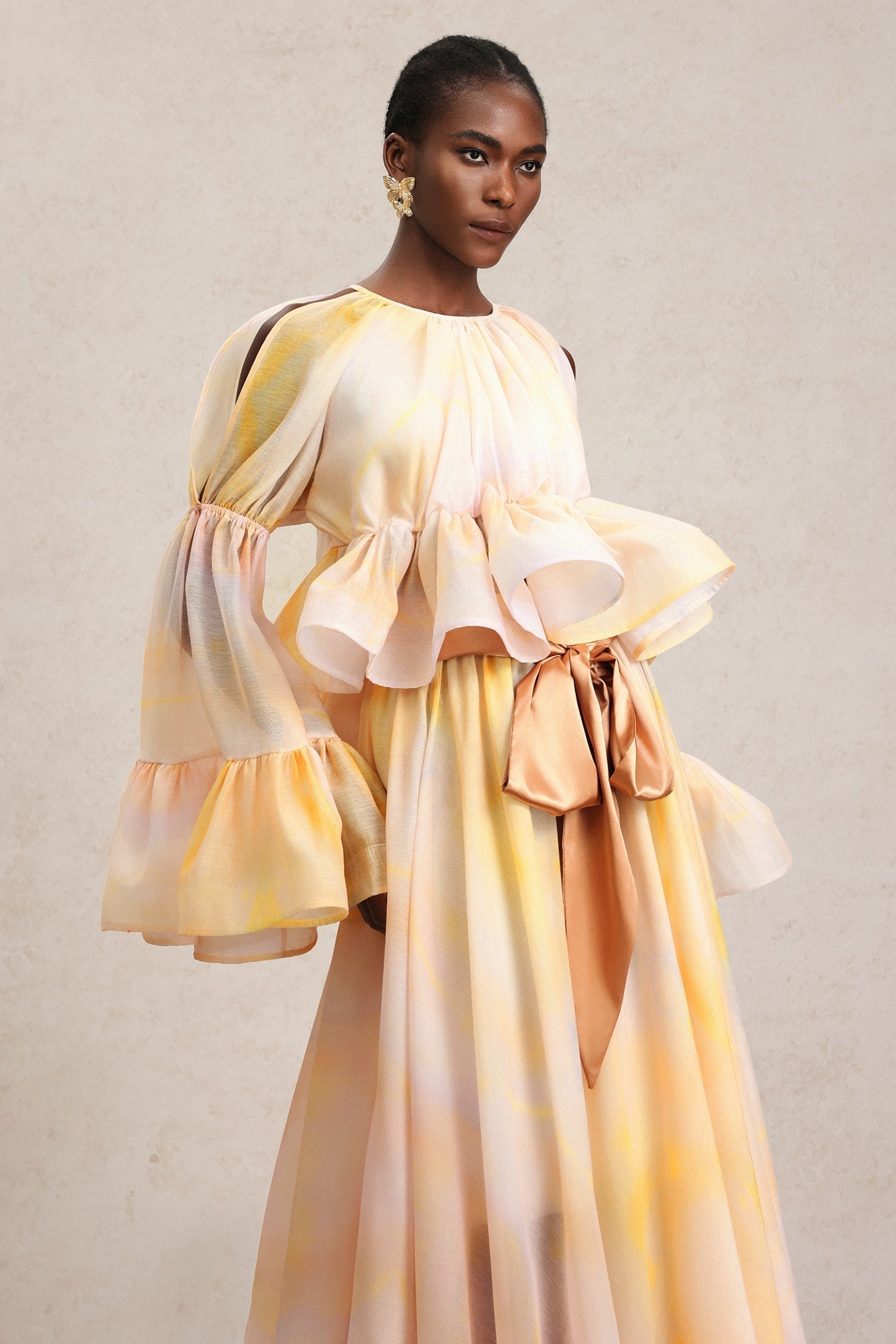 Grinin Uzun Kollu Baskılı Üst ve Maxi Etek İkili Takım, özle tasarlanmış zarafetiyle tüm gözleri üzerinizde toplamayı vaat ediyor. Bu ikili takım, gece şıklığınızı tamamlamak için ideal. Uzun kollu üst baskı detayları ile dinamik bir hava katarken, maxi etek zarif ve feminen bir siluet çiziyor.