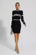 Hayley Siyah Elmas Süslemeli Uzun Kollu Mini Elbise