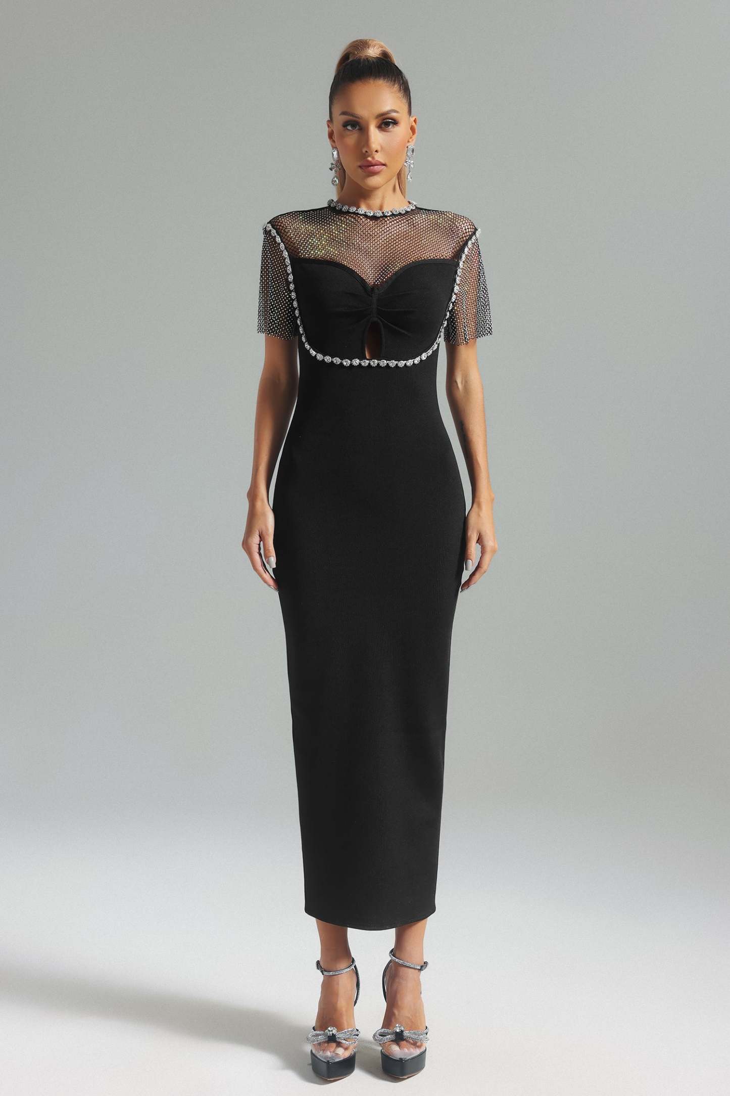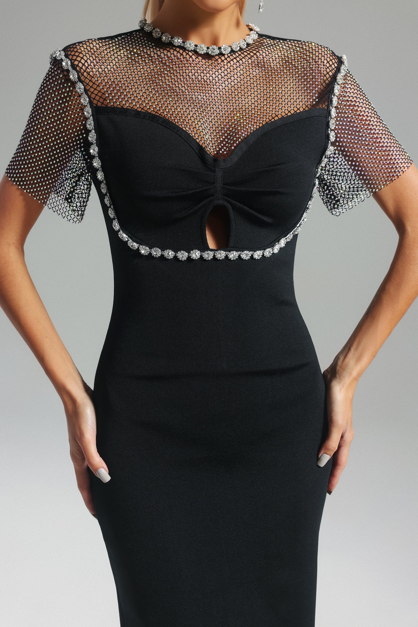 Gece davetlerinde göz kamaştıracak olan "Helene Taş Detaylı Bandaj Midi Elbise", kalite ve şıklığı bir arada sunuyor. Modelimiz S beden giymektedir ve 174 cm boyunda, 89 cm büst, 95 cm kalça, 64 cm bel ölçülerine sahiptir.