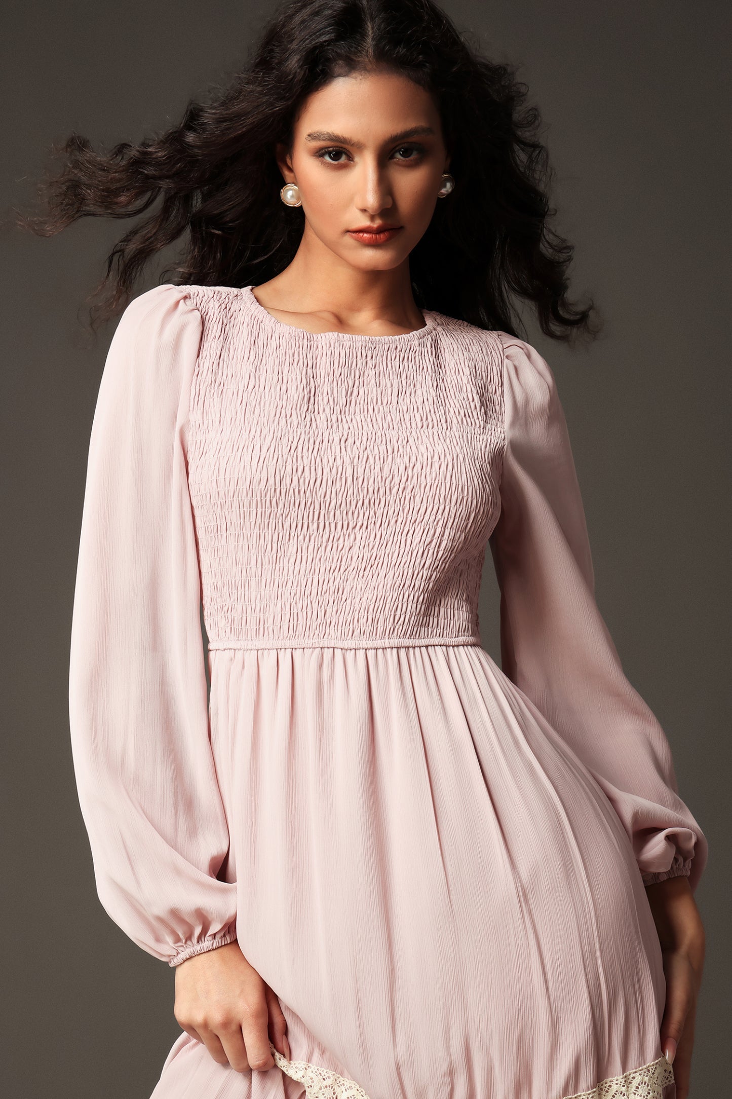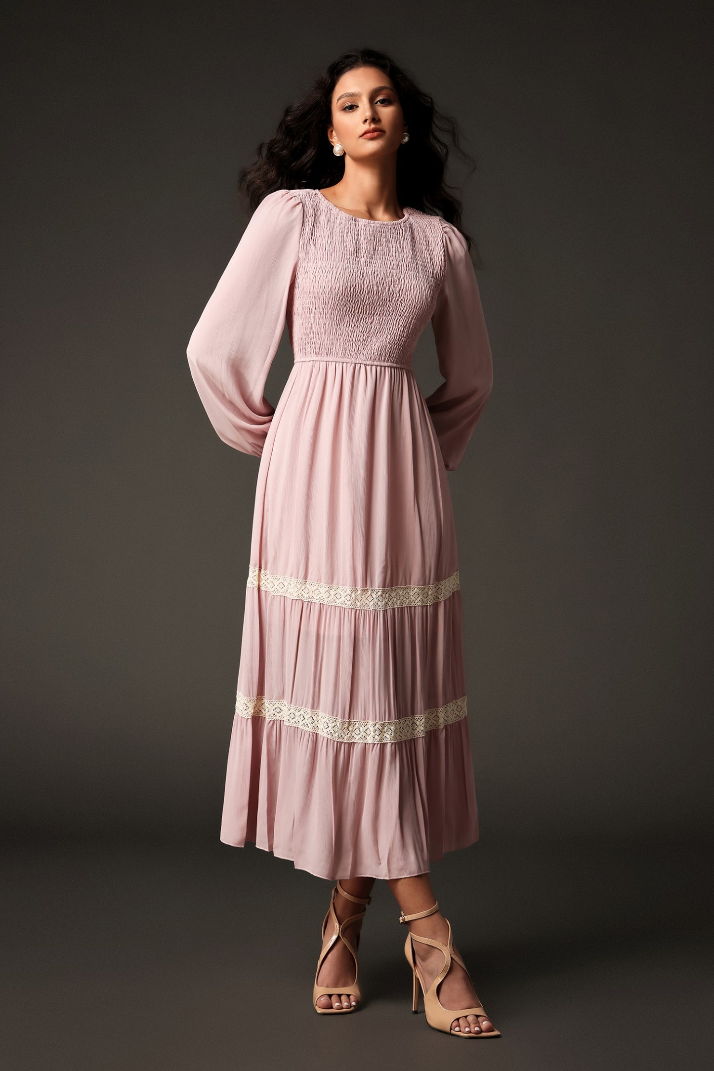 Hester Yuvarlak Yaka Uzun Kollu Dantel Maxi Elbise, sofistike bir tasarımın stil ve zarafetle buluştuğu özel bir üründür. Polyester kumaştan dikkatlice üretilmiş bu maxi elbise, uzun kolları ve dantelli detaylarıyla modern moda anlayışını simgeler. Yumuşak dokusu ve esnek yapısı sayesinde gün boyu konfor sağlar.