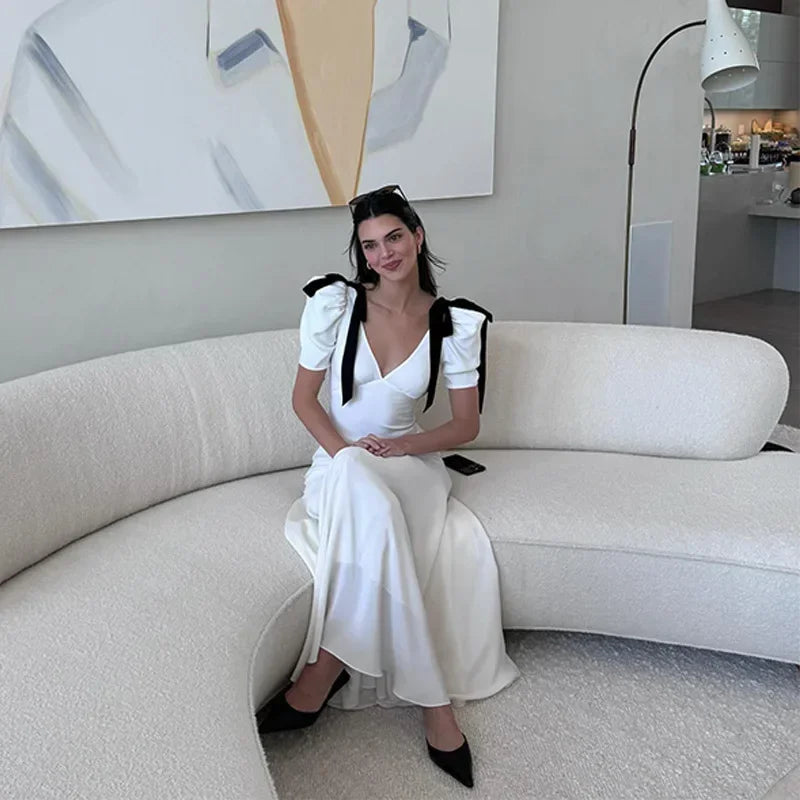Zarif Omuz Detaylı Karpuz Kollu Elbise