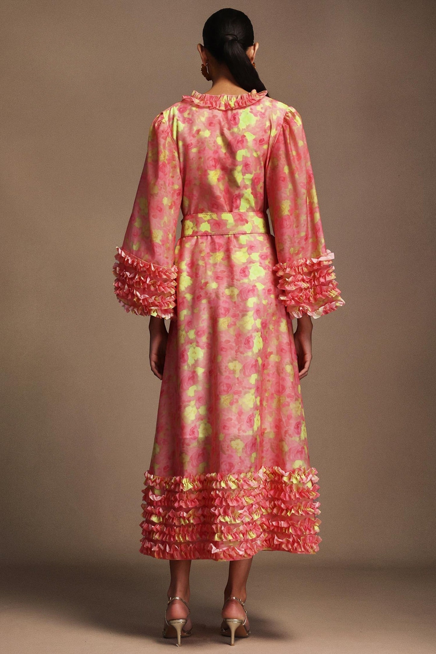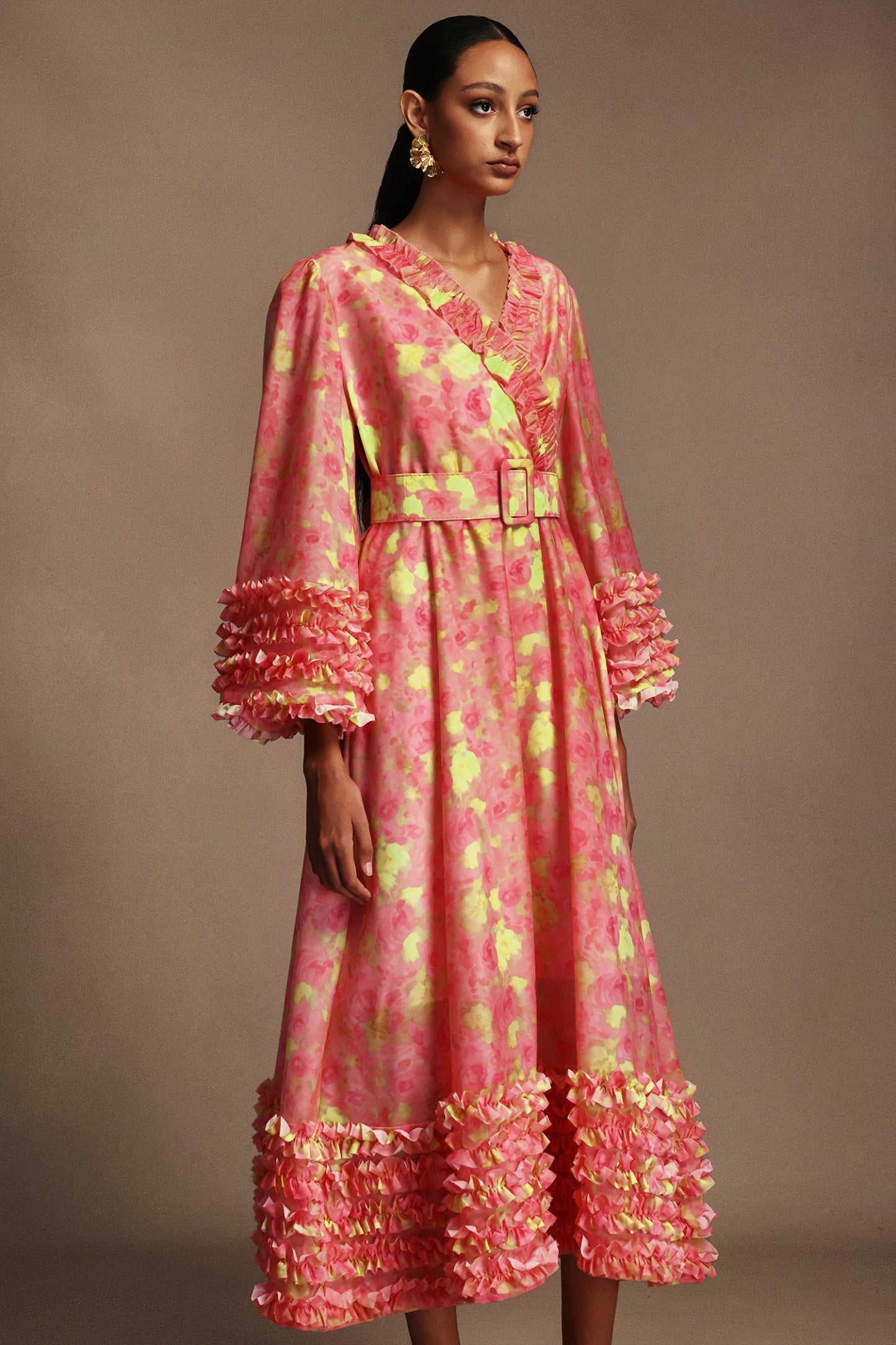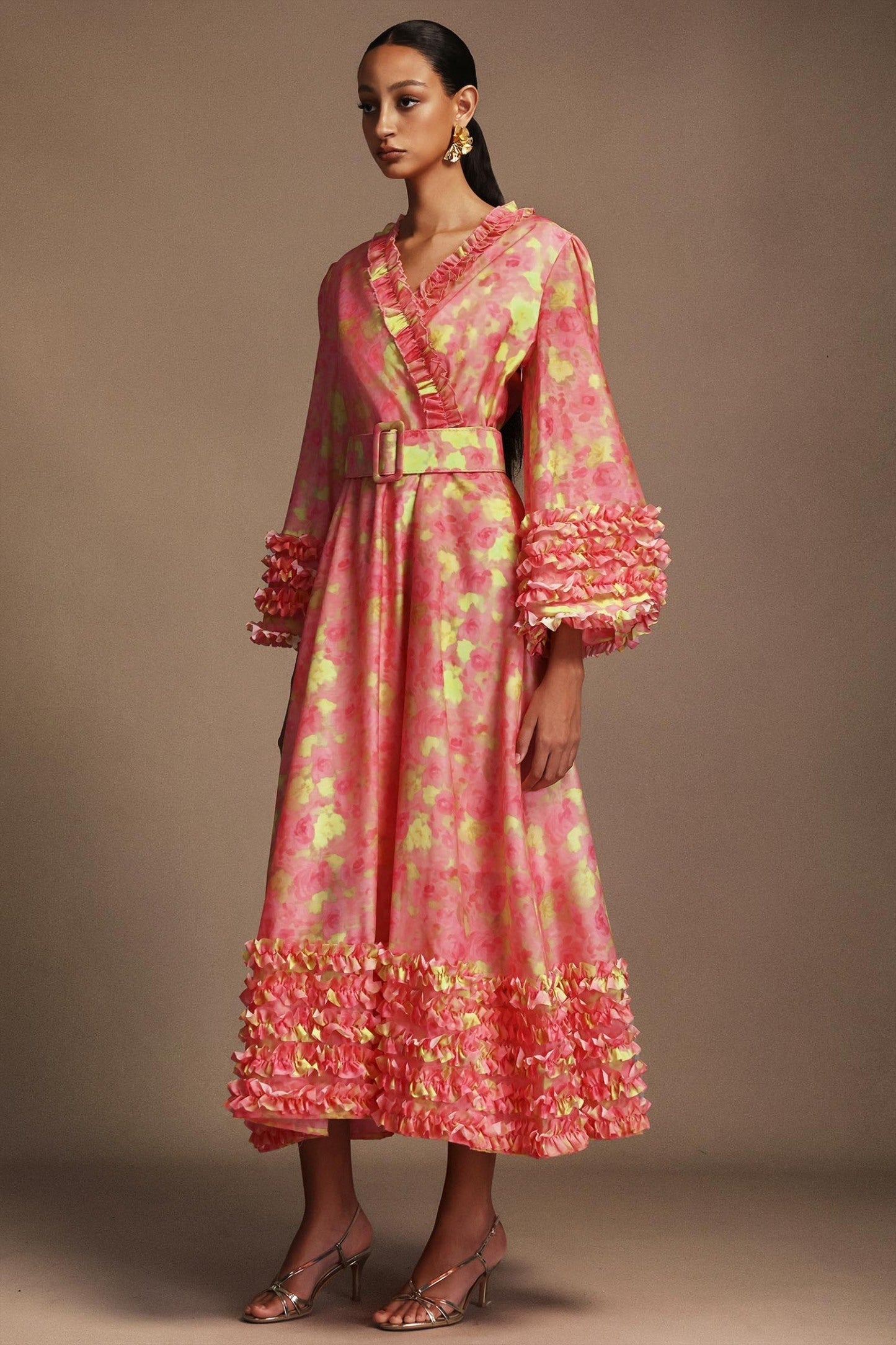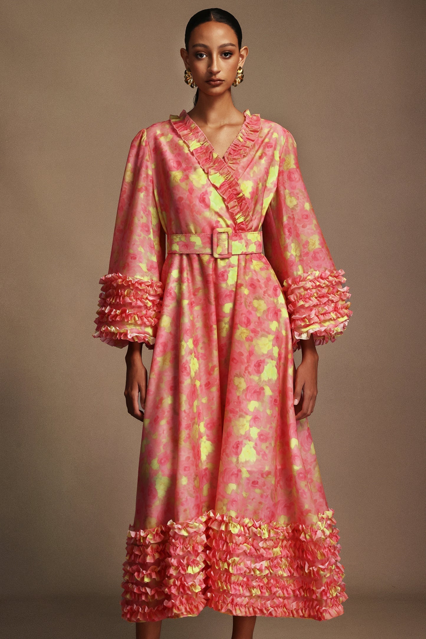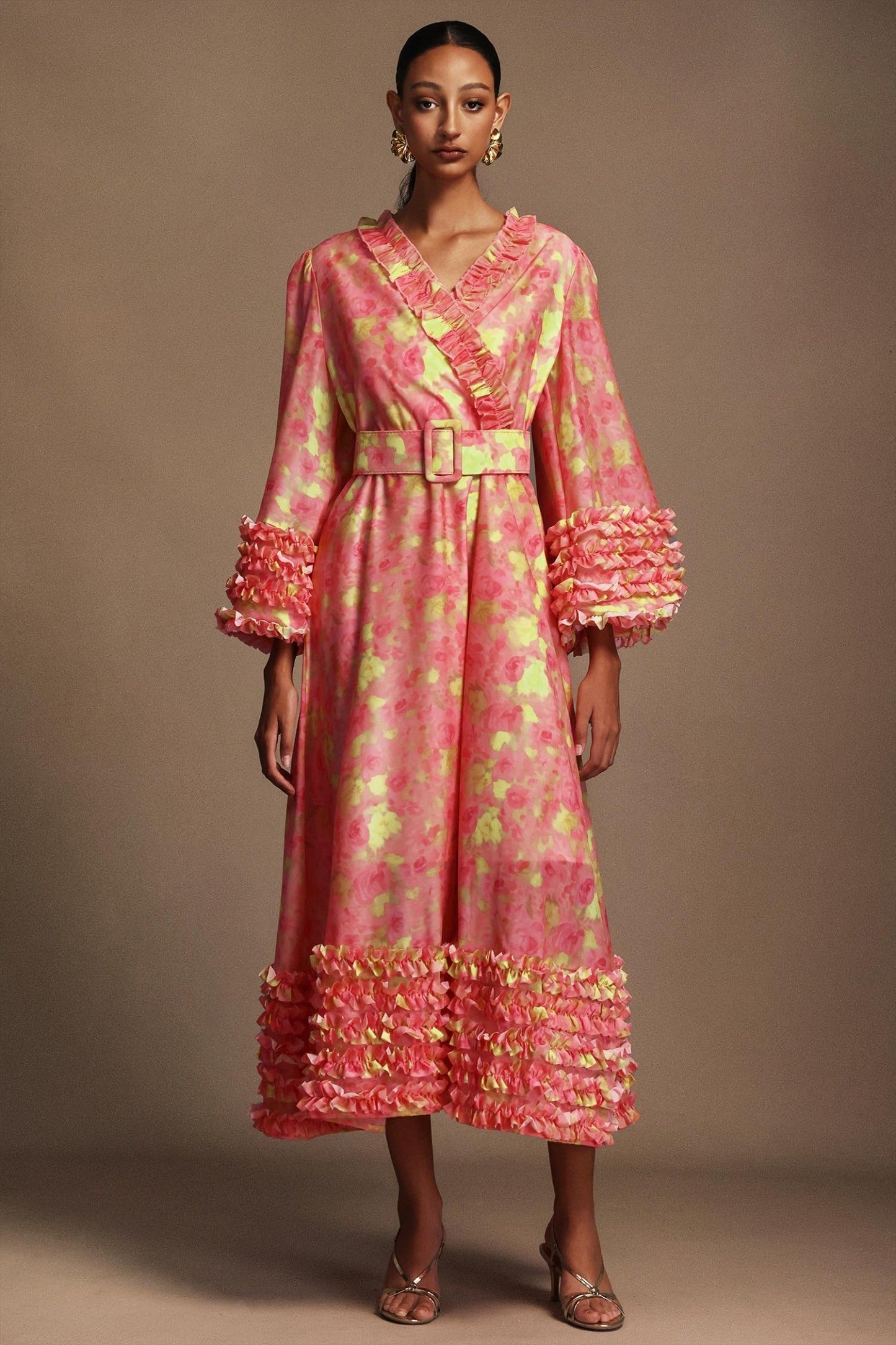 Iresa Çiçek Desenli V Yaka Uzun Kollu Maxi Elbise, her davet için mükemmel bir seçim. Uzun kolları ve zarif V yaka tasarımı ile dikkat çeken bu elbise, bahar ve yaz akşamlarında şıklığınızı tamamlayacak. Özel tasarım çiçek desenleriyle doğanın tüm renklerini üzerinizde taşıyacaksınız.