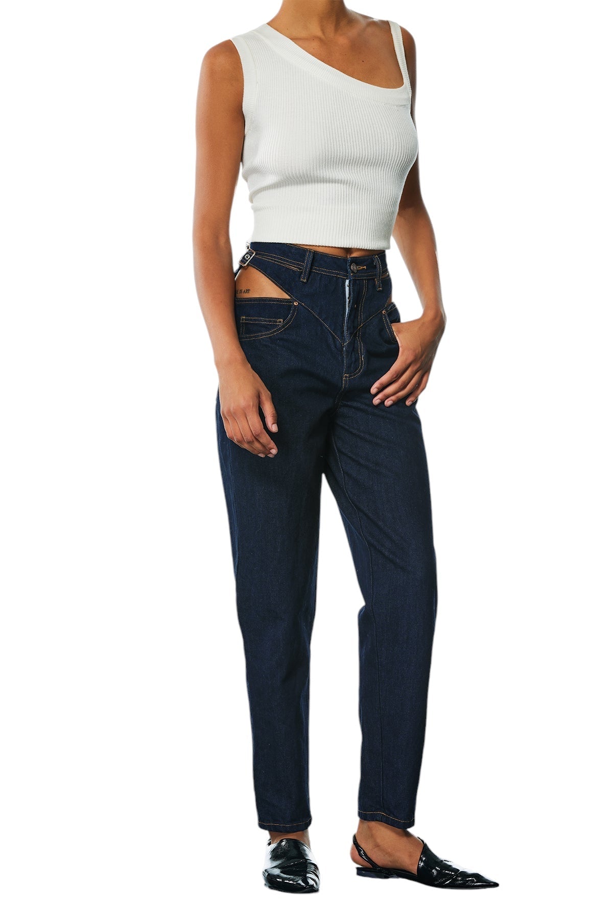 Her gardıroba şıklık ve çok yönlülük katan bir parça. Yüksek kaliteli kumaştan üretilen bu pantolonlar, cesur ve farklı bir tarz sunan özel boşluklu haç tasarımına sahiptir. Rahat kesimi ve vücuda oturan siluetiyle her ortam için mükemmel bir seçimdir. Gardırobunuza şık bir dokunuş getirecek.