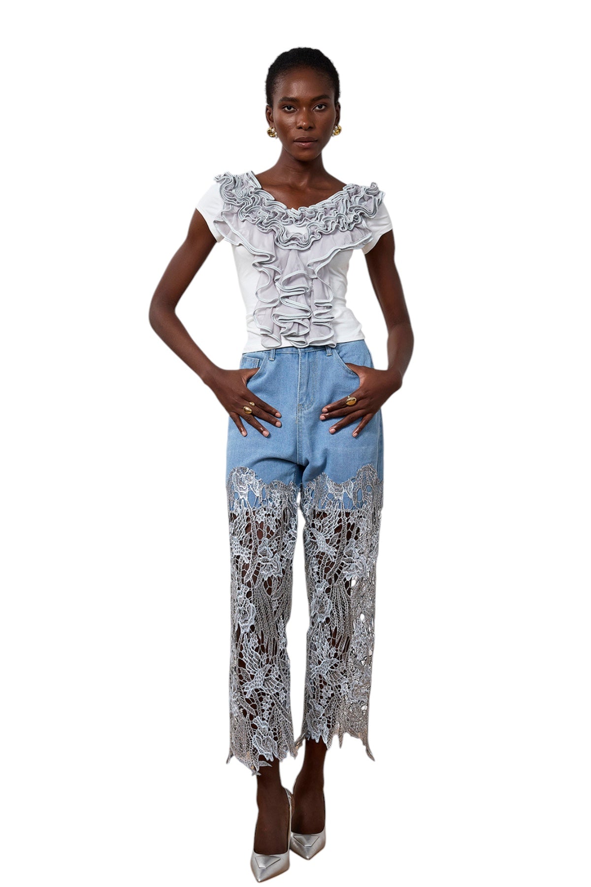 Her gardıroba şıklık ve çok yönlülük katan bir parça. Yüksek kaliteli kumaştan üretilen bu pantolonlar, cesur ve farklı bir tarz sunan özel boşluklu haç tasarımına sahiptir. Rahat kesimi ve vücuda oturan siluetiyle her ortam için mükemmel bir seçimdir. Gardırobunuza şık bir dokunuş getirecek.