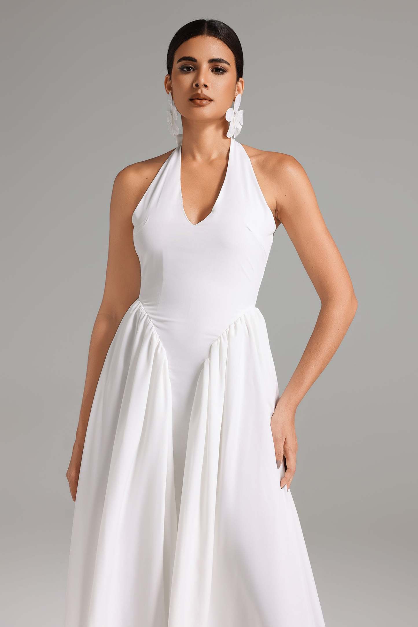 Akşam gökyüzünün büyüsünü taşıyan "Junya Halter Yaka Maksi Elbise" ile tüm gözler üzerinizde olacak. Üstün kaliteli polyester ve esnek spandeks kumaştan üretilmiş bu elbise, hem konforlu bir kullanım sunar, hem de vücut hatlarınızı zarifçe sarar. Halter yaka tasarımı ile omuzlarınızı ve sırtınızı estetik bir şekilde sergilerken, maksi boyu ile asil bir siluet çizer.