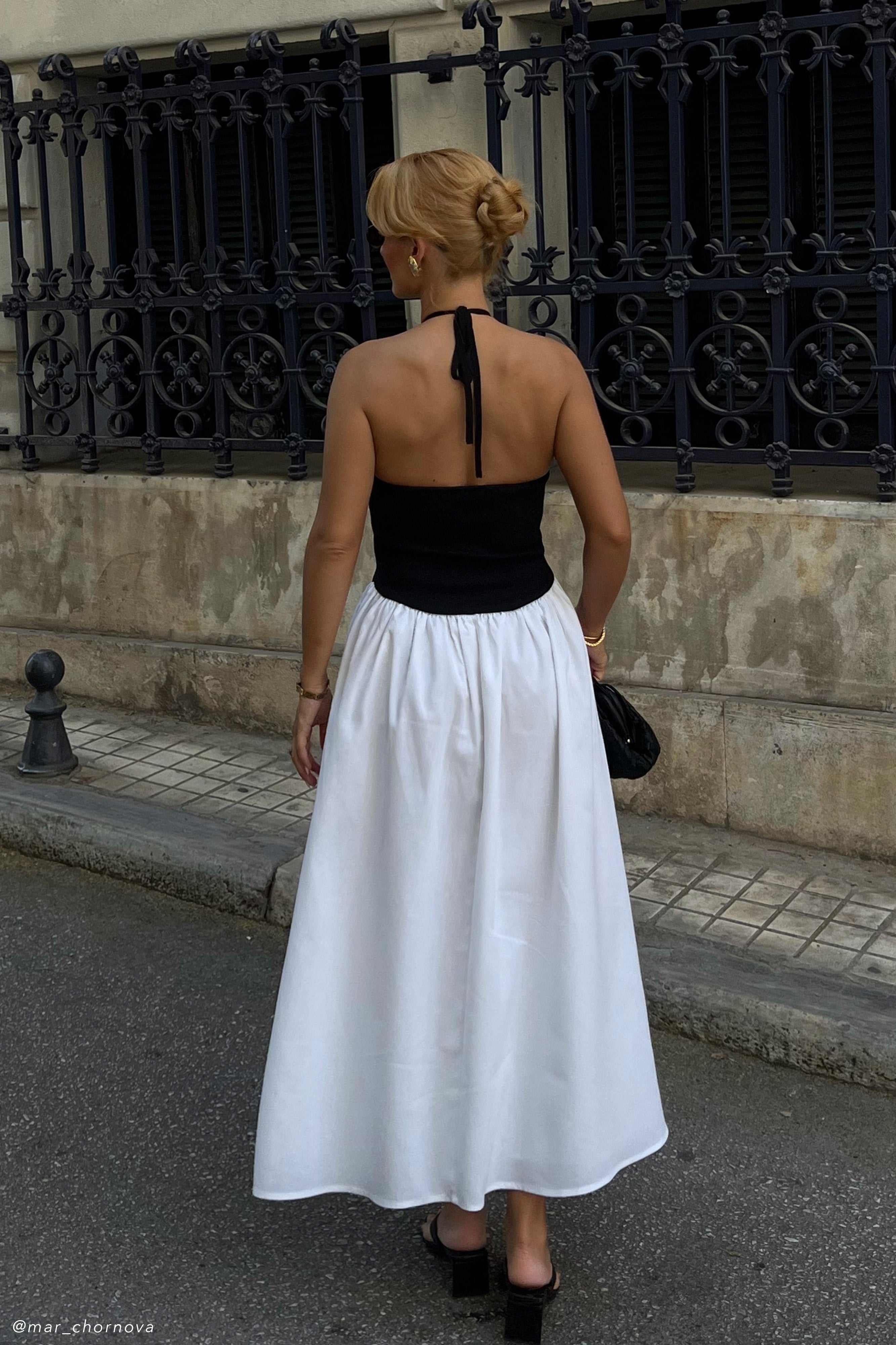 Katie Örgü Ve Keten Midi Elbise - Siyah/Beyaz