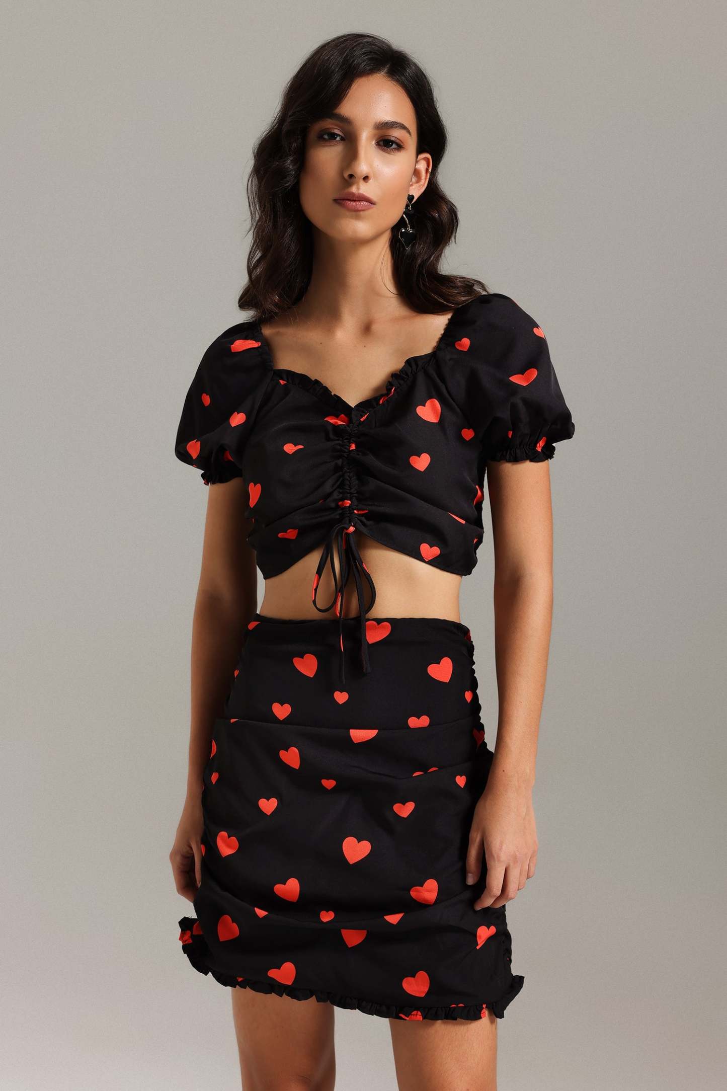 Kerenza Kalpli Büzgülü Takım ile zarafetinizi gün yüzüne çıkarın. Bu eşsiz tasarım, kalpli desenleri ve rahatlığı bir araya getirerek sofistike bir görünüm sunar. Polyester kumaş yapısı sayesinde hem dayanıklı hem de esnek bir kullanım sağlar. Makinede soğuk suda ve yumuşak programda yıkayabilirsiniz.