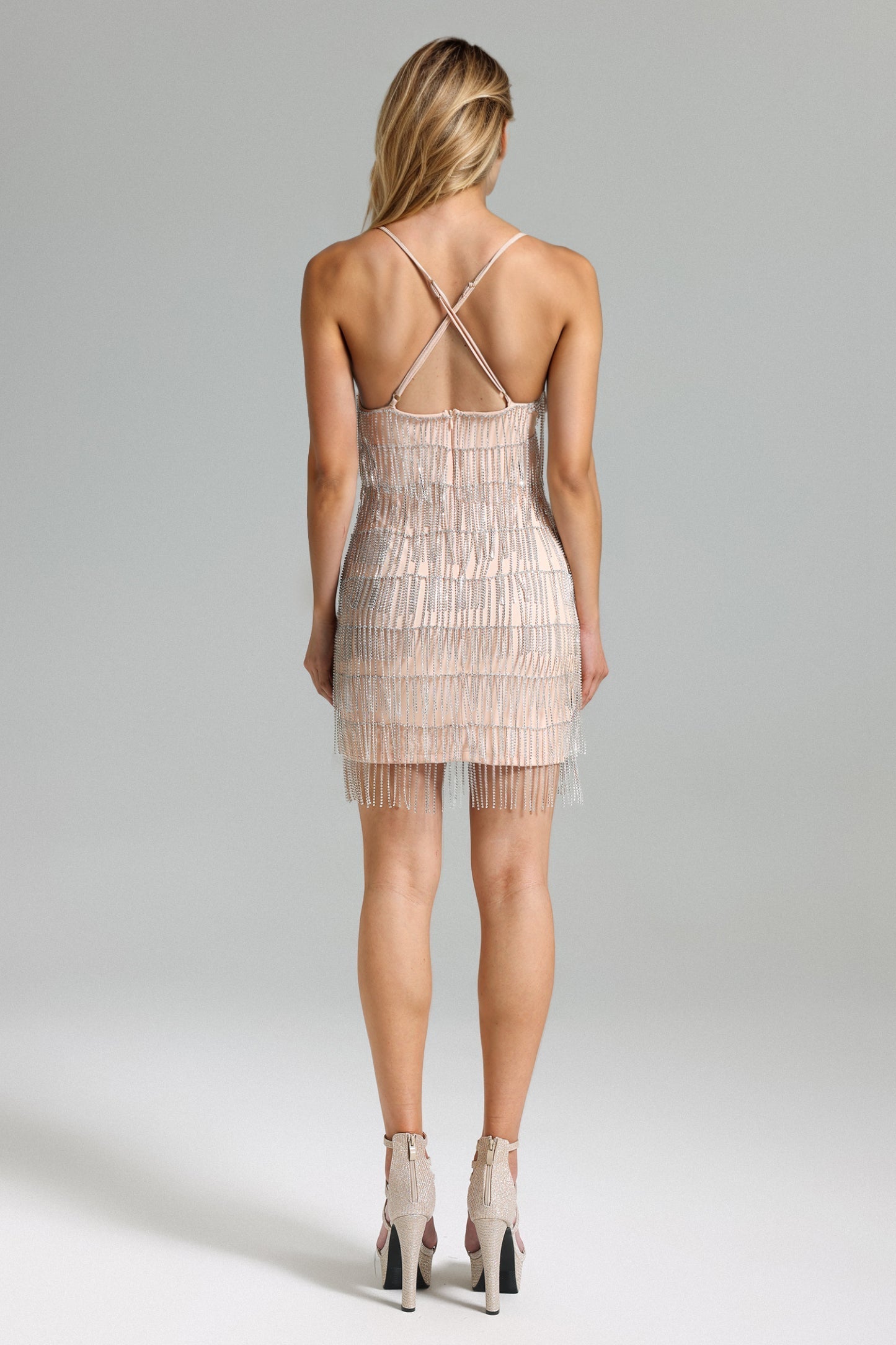 Bu elbise, işlevsel halter yaka tasarımı ile omuzları ve sırt bölgesini sergilerken, minik etek boyu ile bacaklarınıza estetik bir zarafet katar. Hem gece davetlerinizde hem de özel kutlamalarda göz kamaştırıcı bir görünüm sunar.