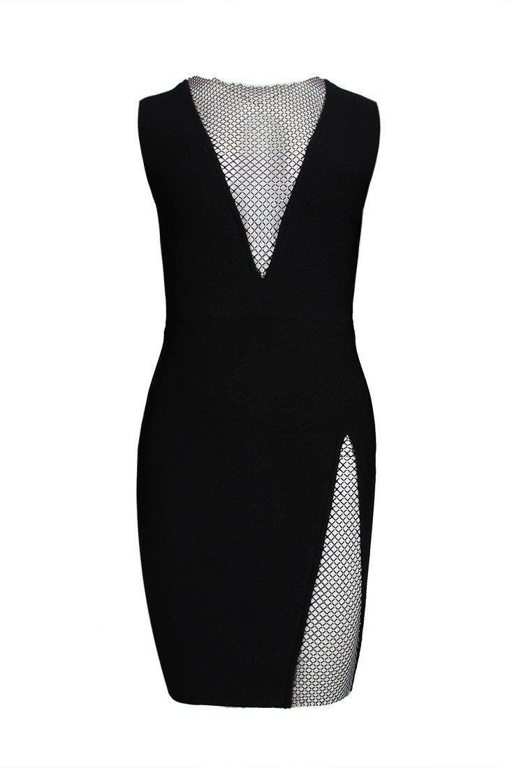 Konka Taş Detaylı Mini Kokteyl Elbisesi, özel gecelerinizde tüm gözleri üzerinize çekecek. Derin V yaka kesimi ve kolsuz tasarımı ile feminen çizgiler ön planda. Vücudu saran dar kesim formu ile figürünüzü zarifçe sarıyor. Yan kısmındaki küçük yırtmaç, bu mini parti elbisesine cüretkar bir hava katıyor.