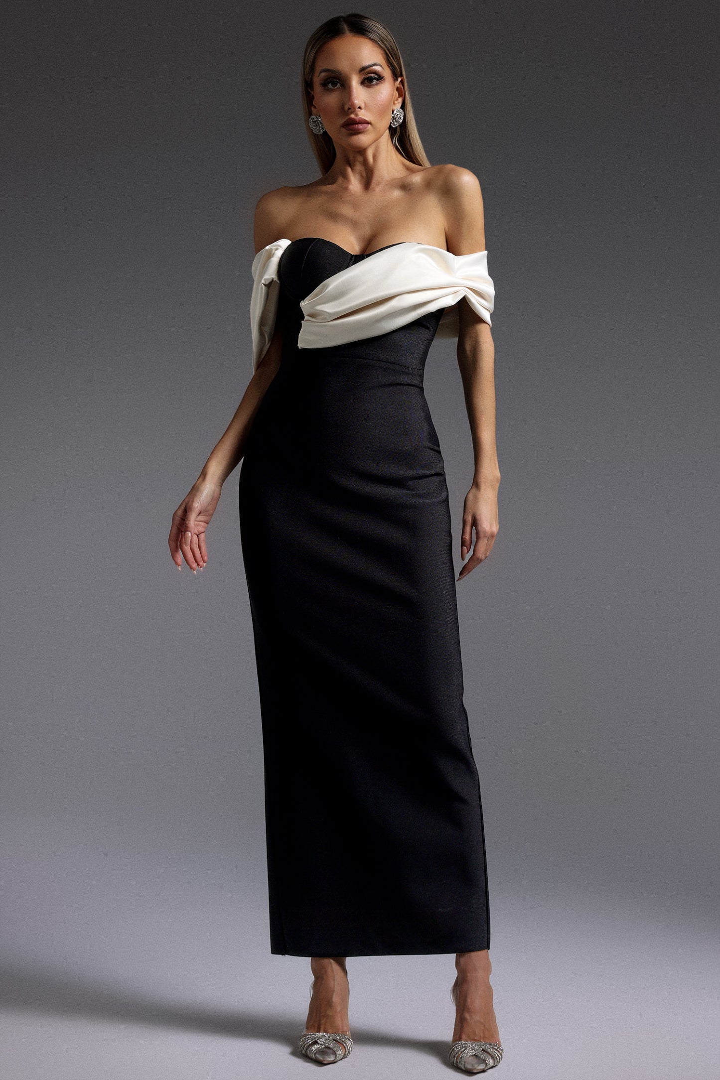 Omuzu Açık Uzun Bandajlı Elbise, vücudu zarif bir şekilde sararak kusursuz bir görünüm sunar. Göğüs, bel ve kalça bölgelerinde yer alan esnek yapı, vücudunuzun hatlarına mükemmel uyum sağlar. Ürün özellikle özel geceler, davetler ve şık etkinlikler için idealdir. Kumaşın esnekliği, hareket özgürlüğü sunarken, omuz detayları ile feminen bir dokunuş katıyor.