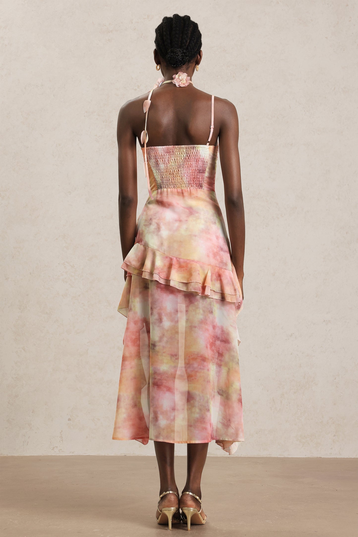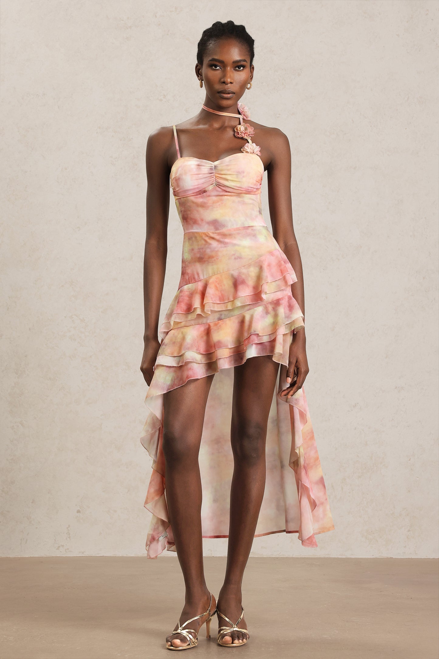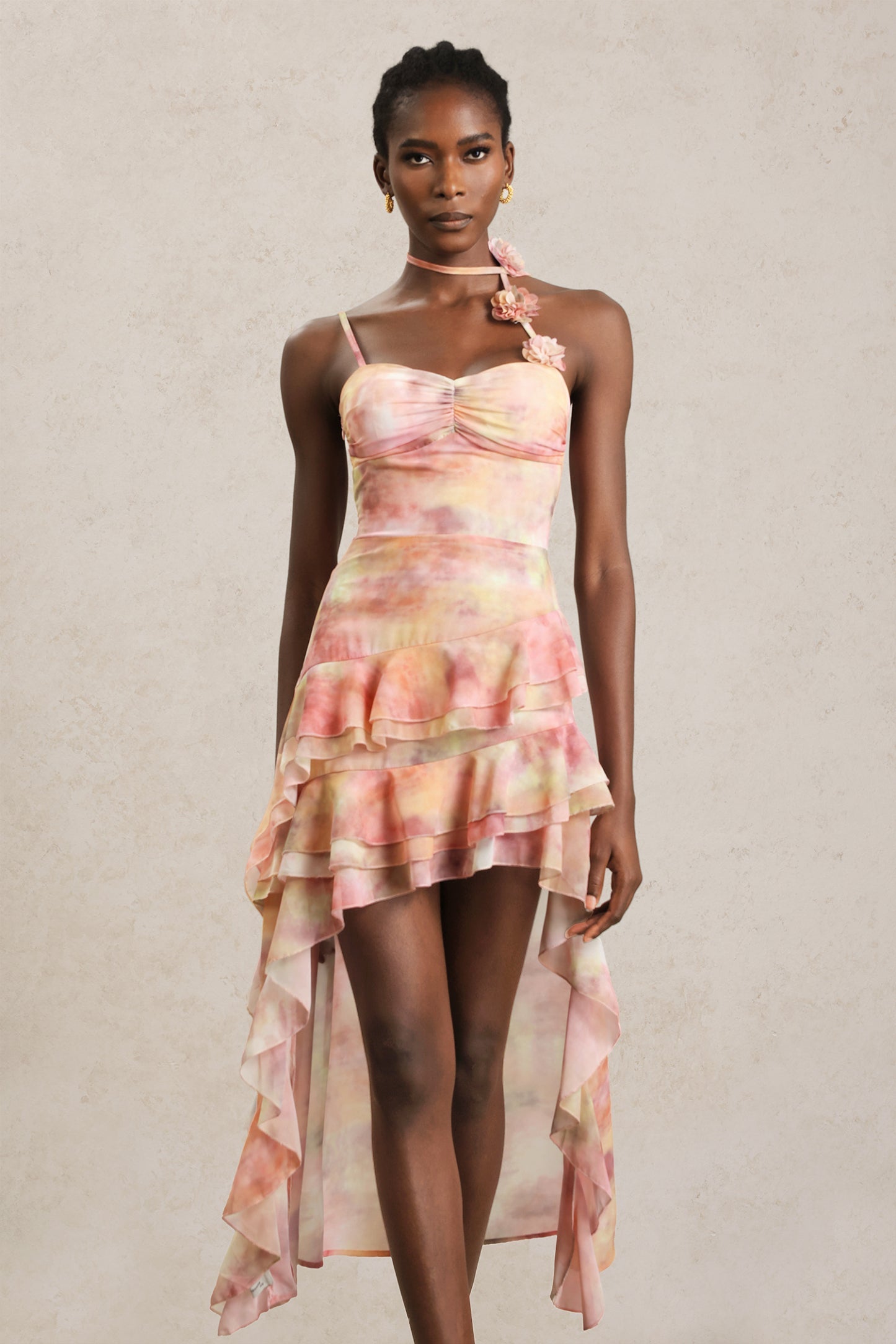 Larina Çiçekli Halter Yaka Volanlı Mini Elbise