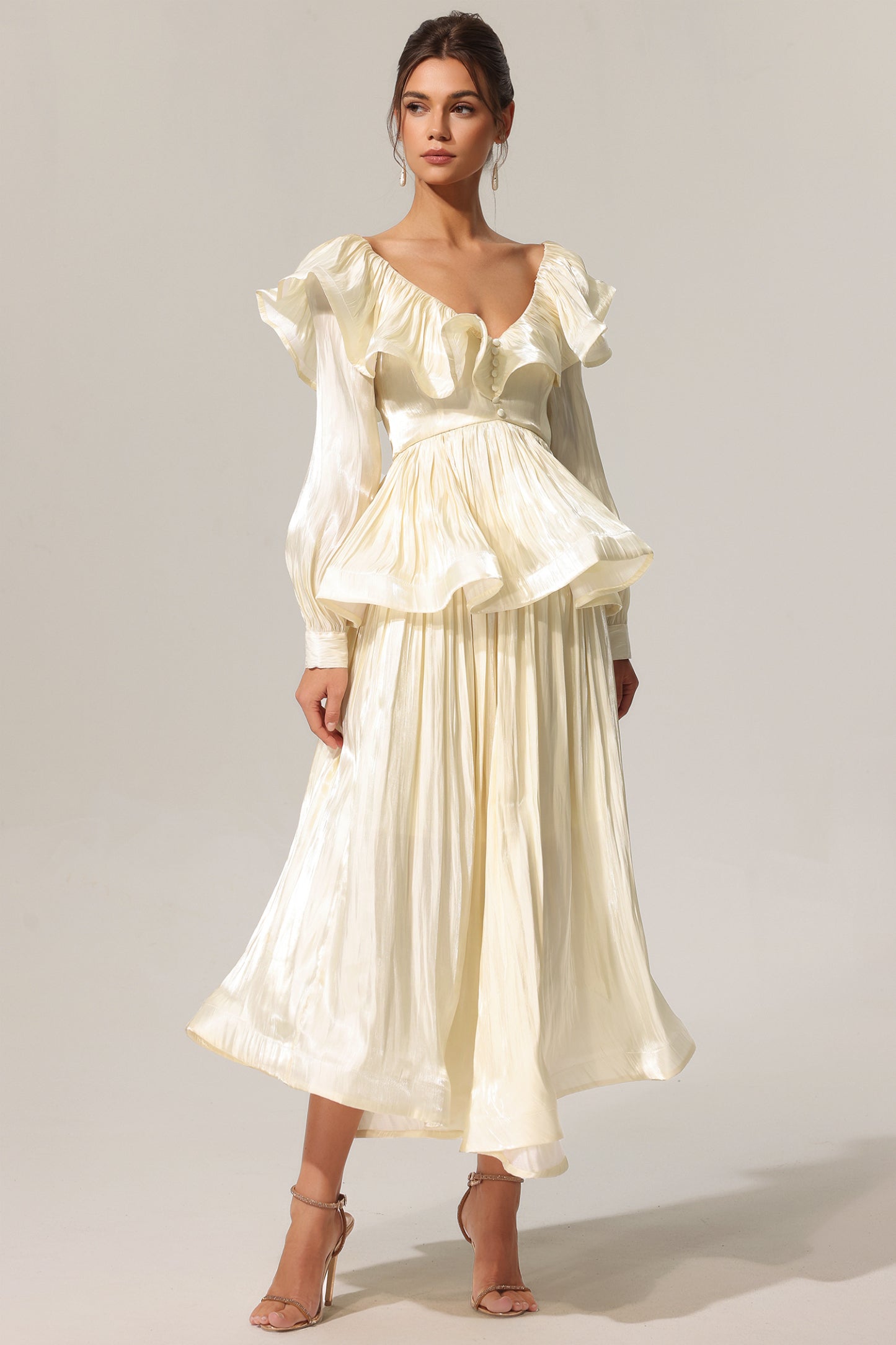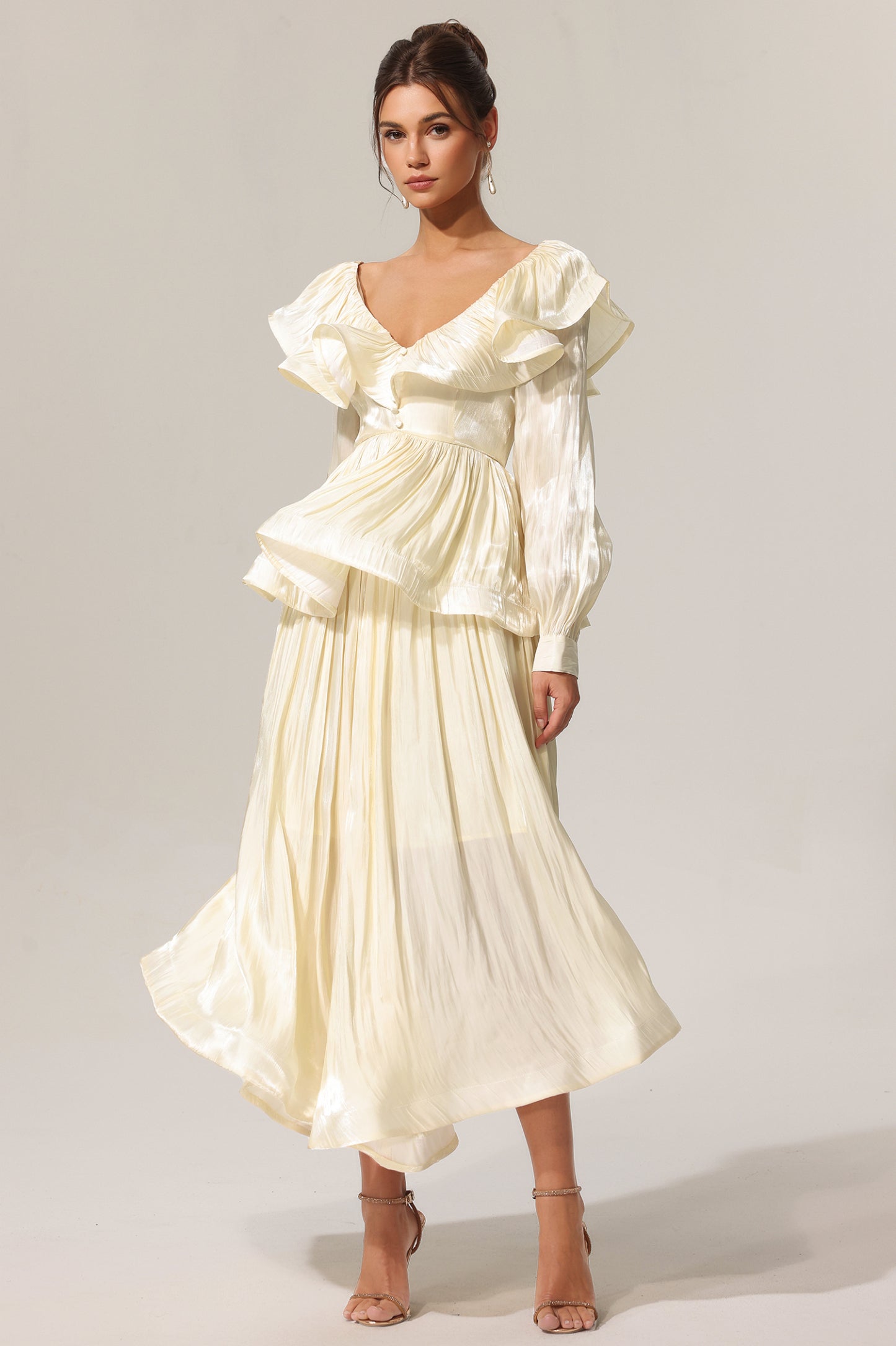 Gece şıklığı için ideal olan bu elbise, davetlerde, özel günlerde veya şık bir akşam yemeğinde tercih edilebilir. Bağcıklı detaylar ve ince dokunuşlarla bezenmiş tasarım, zarafetinizi ön plana çıkaracak.