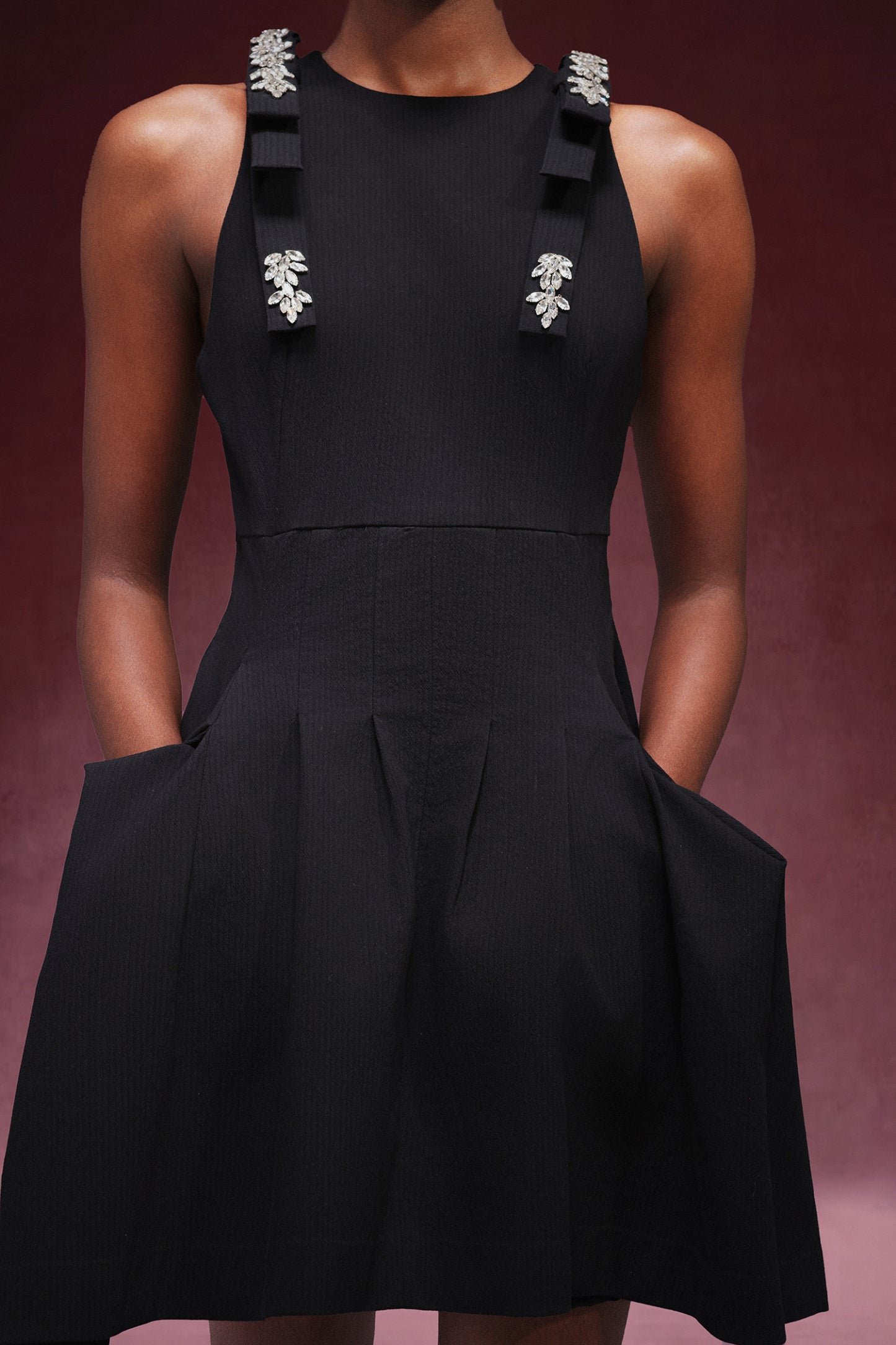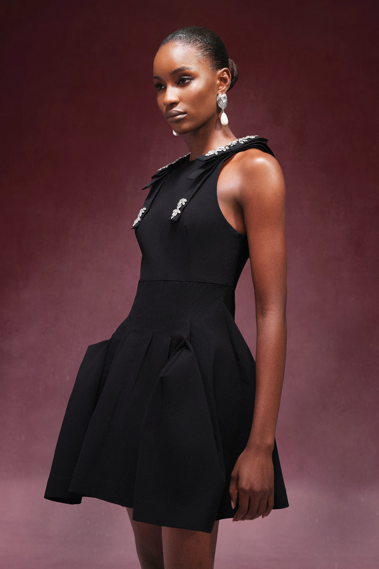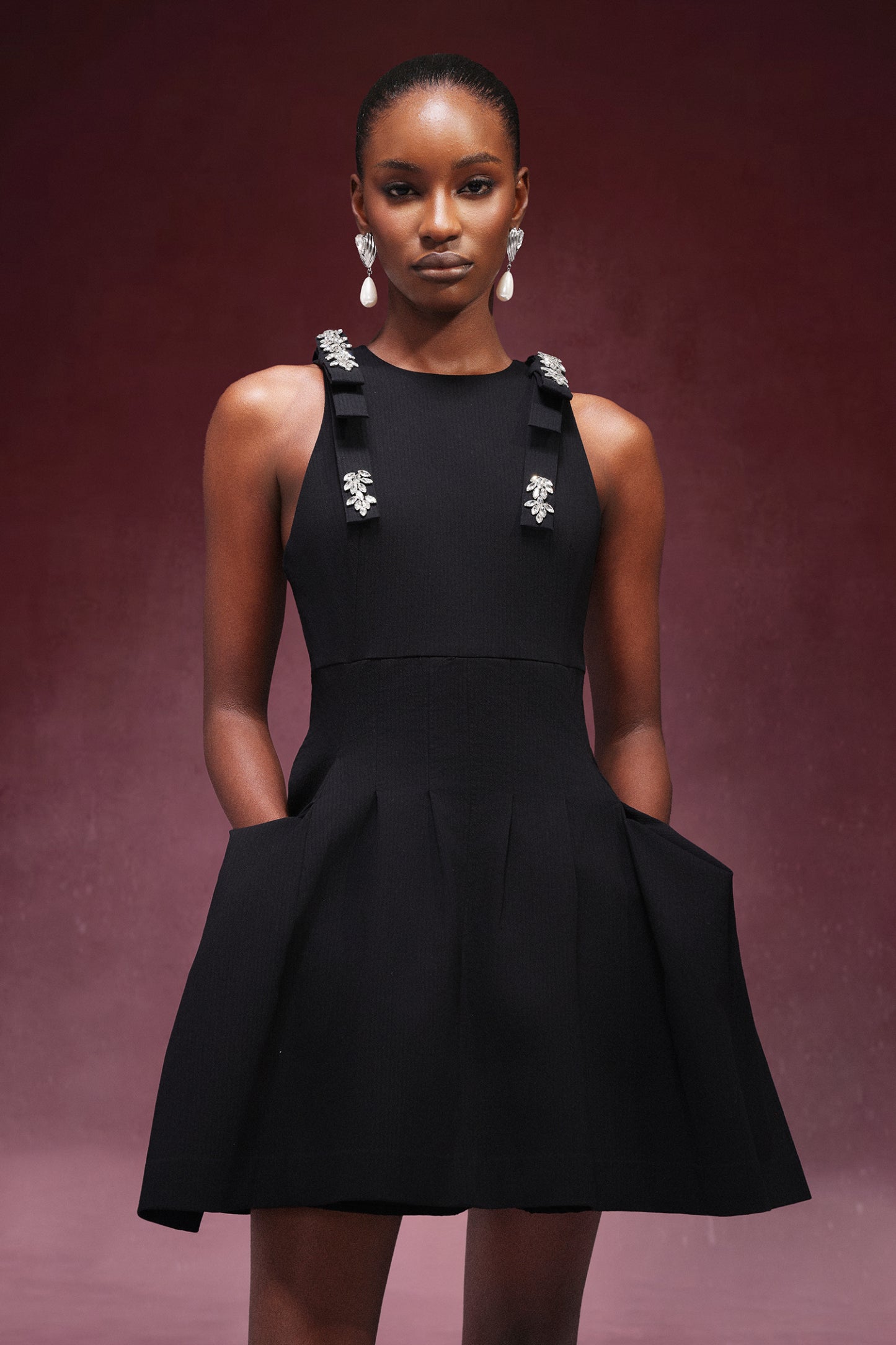 Taş Detaylı Fiyonklu Kolsuz Mini Elbise
