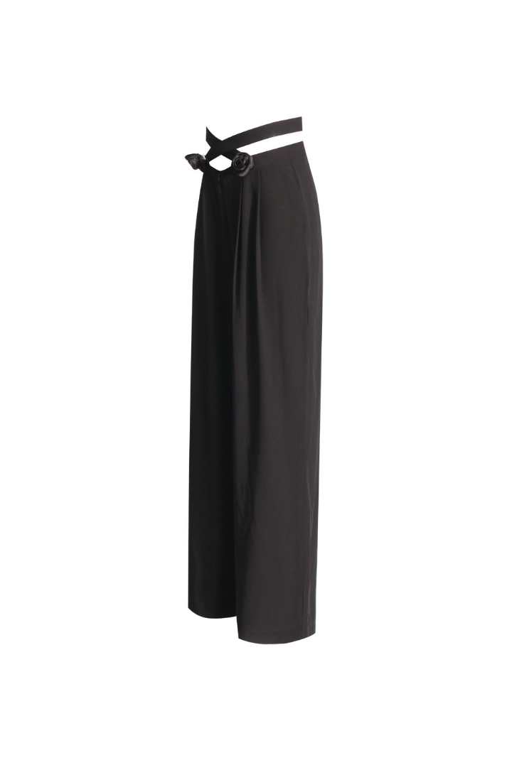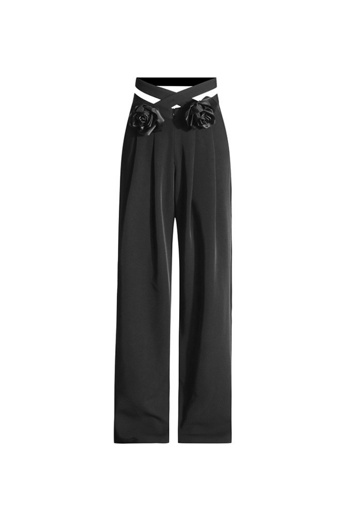 -Stil: Gül aplikeli bel sarmal detay pantolon