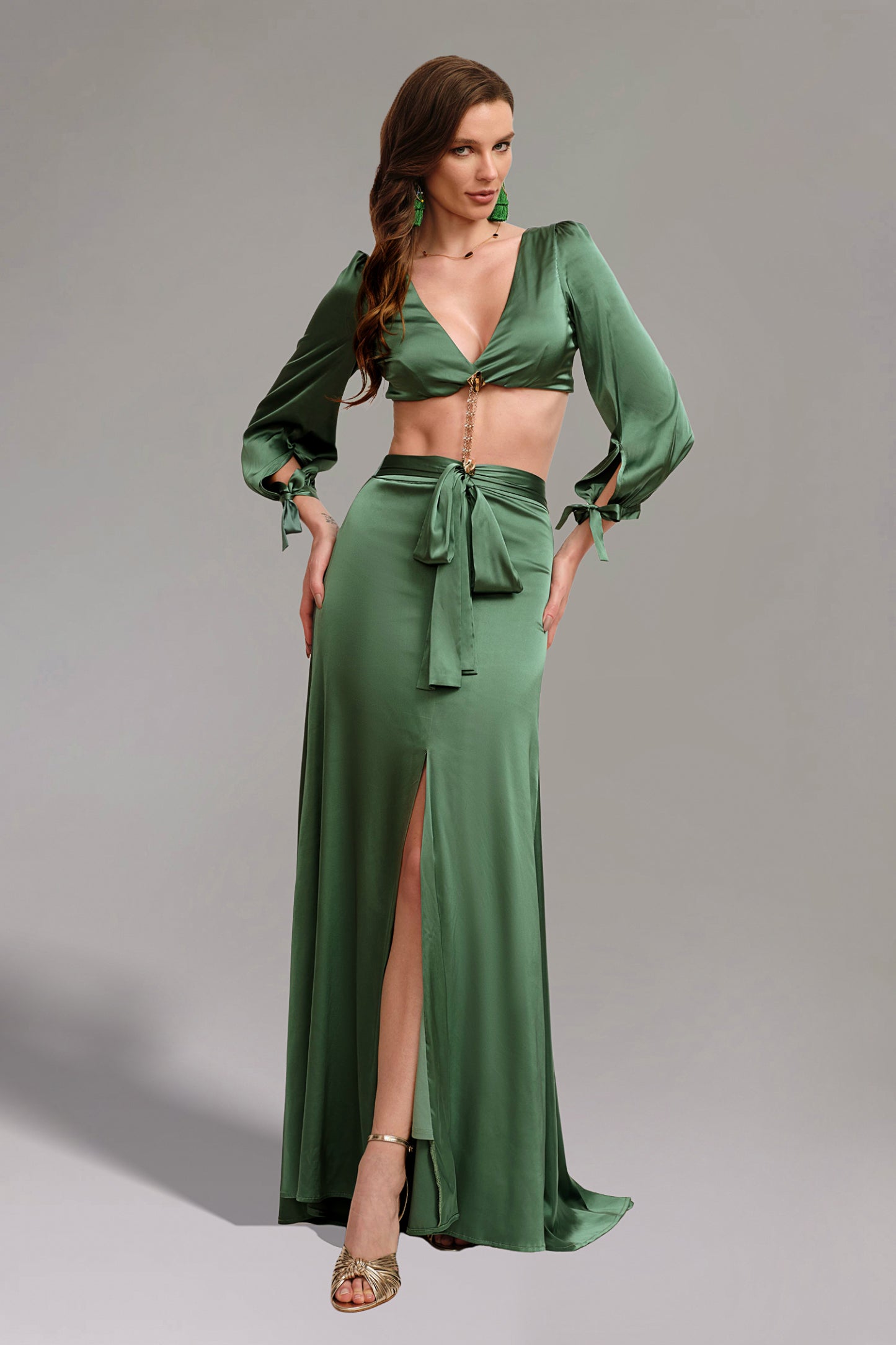 Yeşil Derin V Yaka Uzun Elbise, Clara Fonet Atelier koleksiyonunun seçkin parçaları arasında yer alıyor ve özel tasarımı, üstün kaliteli malzemeleri ve üst düzey işçilik becerileri ile dikkat çekiyor. Mükemmel uyumu sağlamak üzere detaylı bir biçimde kesilmiş bu elbise, tüm gözleri üzerinize çevirecek.
