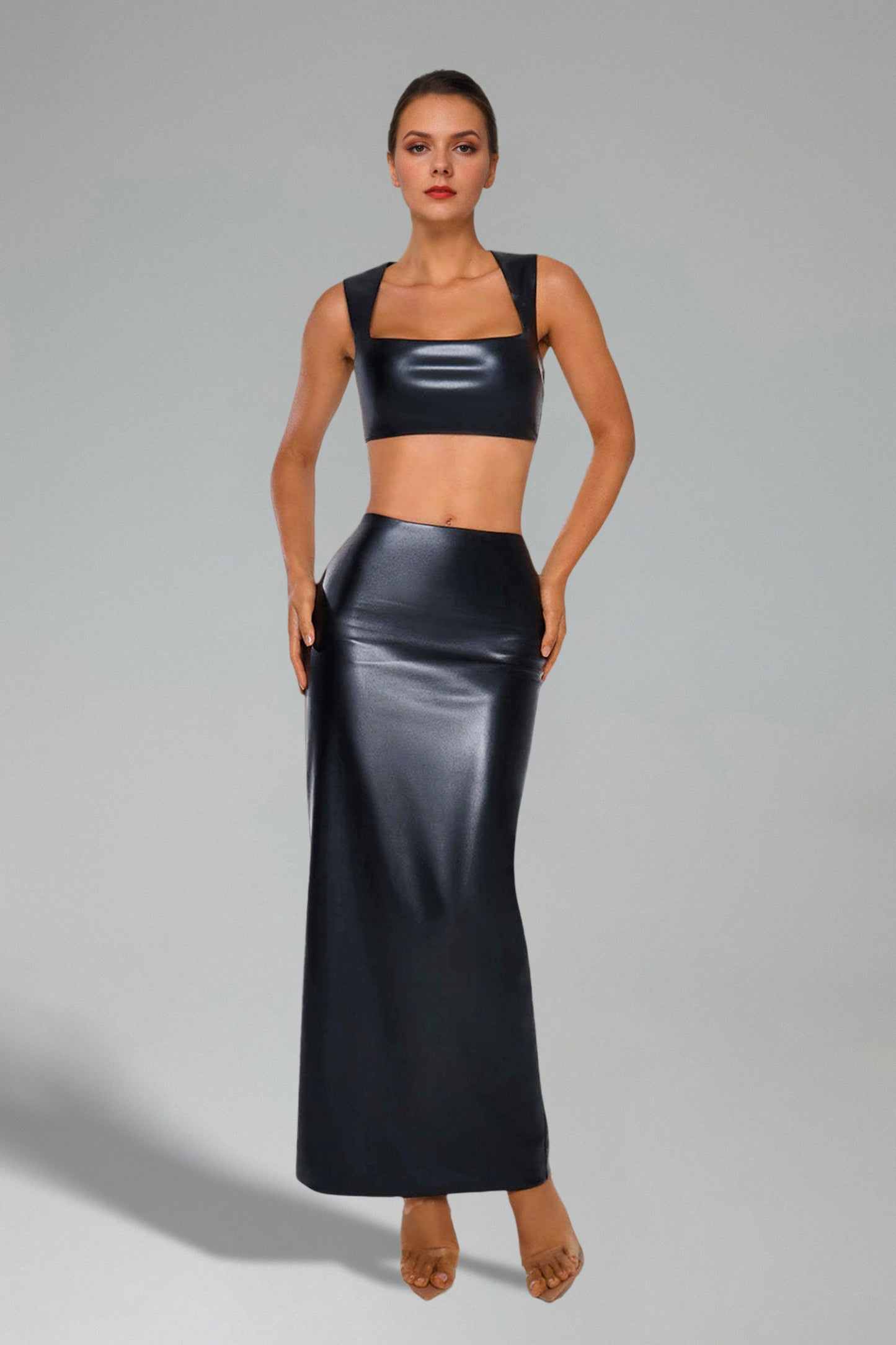 Lorena Suni Deri Yırtmaçlı Maksi İkili Set