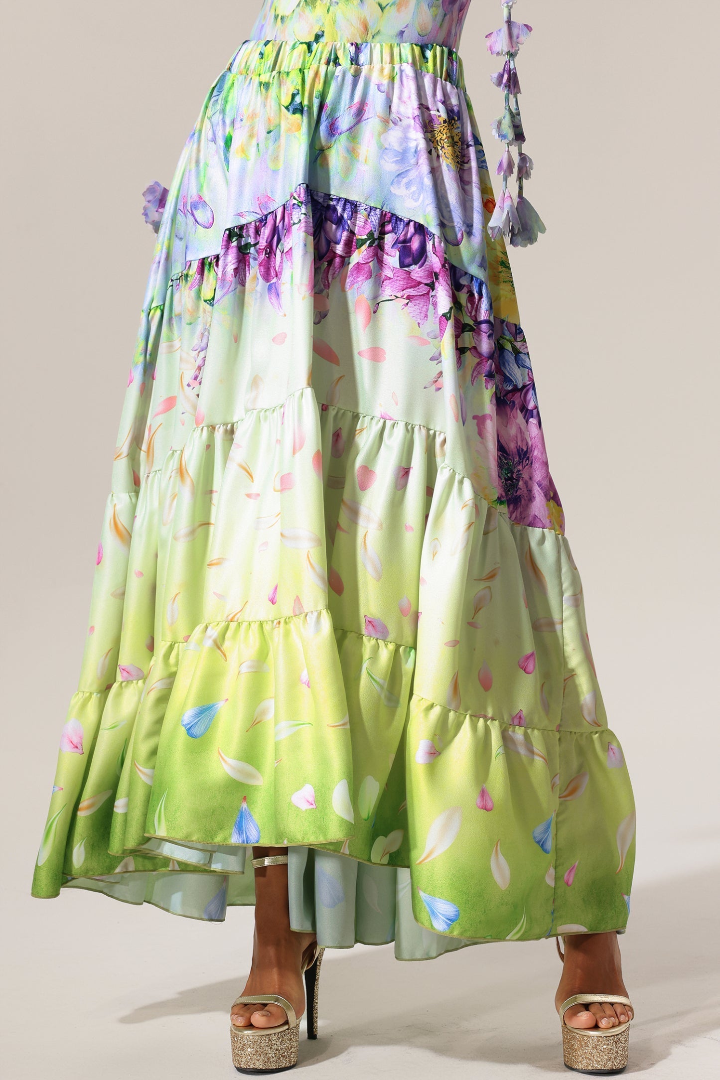 Gece şıklığından günlük kullanıma, plaja kadar her ortamda iddialı bir stil vadediyor. Özel üretim bu set, halter yaka mayonun üzerine serpiştirilmiş çiçek desenleri ve püsküllerle tamamlanmıştır. Etek ise diz üstü boyuyla bacaklarınıza nazik bir vurgu yapar, hareket özgürlüğü sağlar.