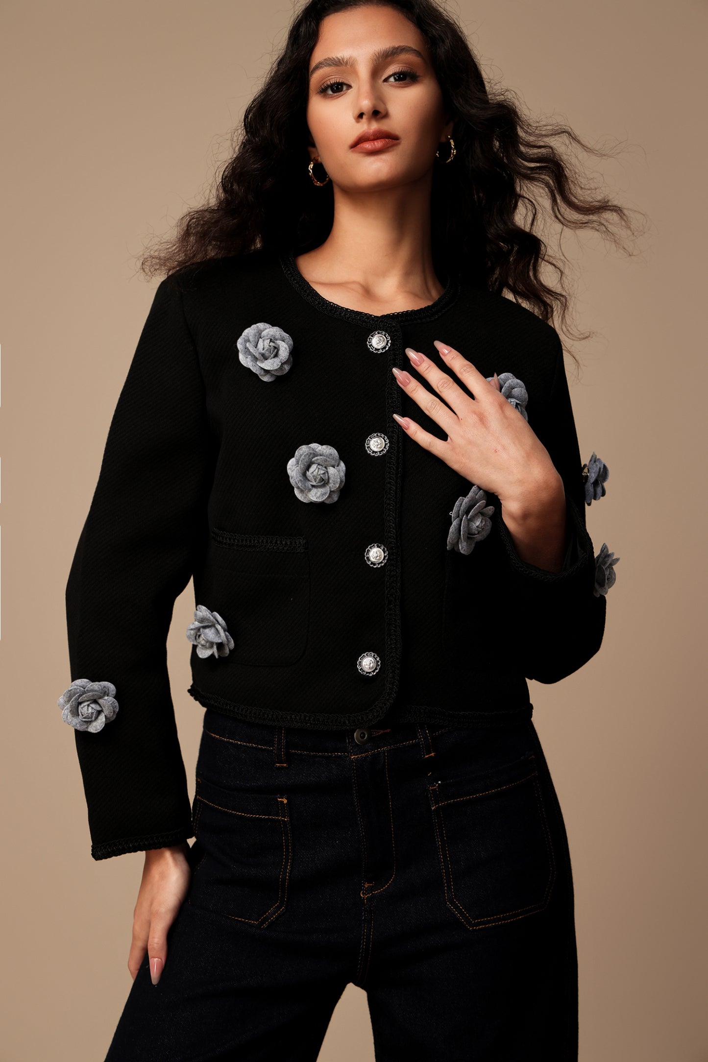 Mailik Uzun Kollu Çiçek Desenli Mini Ceket, her dolabın vazgeçilmez parçası! %80-90 oranında polyester içeriği ve %30'a kadar spandeks katkısıyla hem hafif hem de esnek bir yapı sunar. Bu şık ceketi, gece davetlerinde, özel toplantılarda ya da günlük kullanımda tercih edebilirsiniz. Modern kesimli ve çiçek desenleri ile dikkat çeken bu mini ceket, bahar ve yaz aylarının serin akşamlarında ideal bir seçimdir.