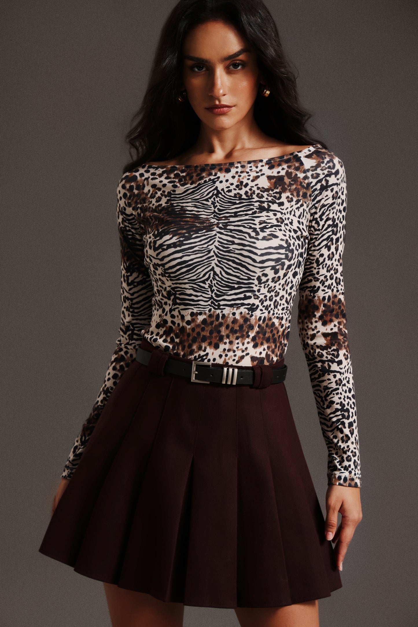 Şıklığın vahşi dokunuşuyla tanışın: Maris Leopar Desenli Yuvarlak Yaka Uzun Kollu Üst. Rahat ama iddialı bir görünüm sunan bu üst, %90 ila %95 mikromodal kumaş içeriğiyle özel olarak tasarlanmıştır. Esnek yapısı sayesinde gün boyu konfor sağlar ve vücudu nazikçe sarar.
