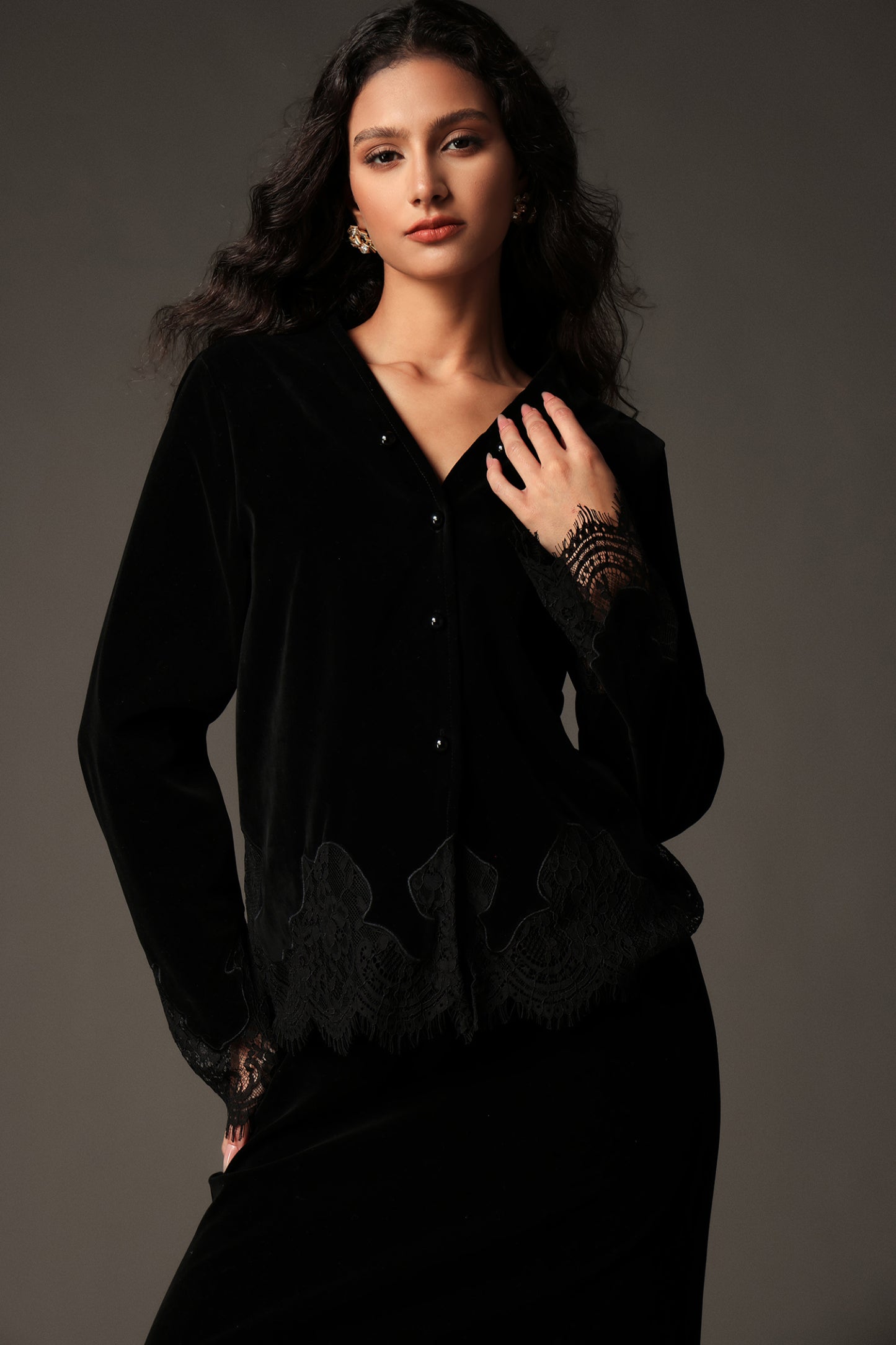 Martha V Yaka Dantelli Kadife Uzun Kollu İkili Takım, her şıklık anlayışına hitap eden zarif tasarımıyla öne çıkar. %30'dan az polyester içeren kumaş yapısı, yumuşak dokunuşu ve esnekliği ile rahat bir kullanım sunar. Makinede soğuk suyla ve nazik döngüde yıkanabilir, ağartıcı kullanılmamalıdır. Ürün yatay olarak kurutulmalıdır.