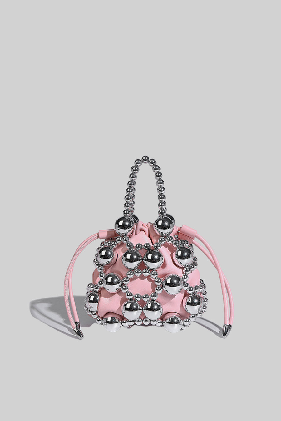 Pembe Deri El Çantası – Metal Boncuk Süslemeli