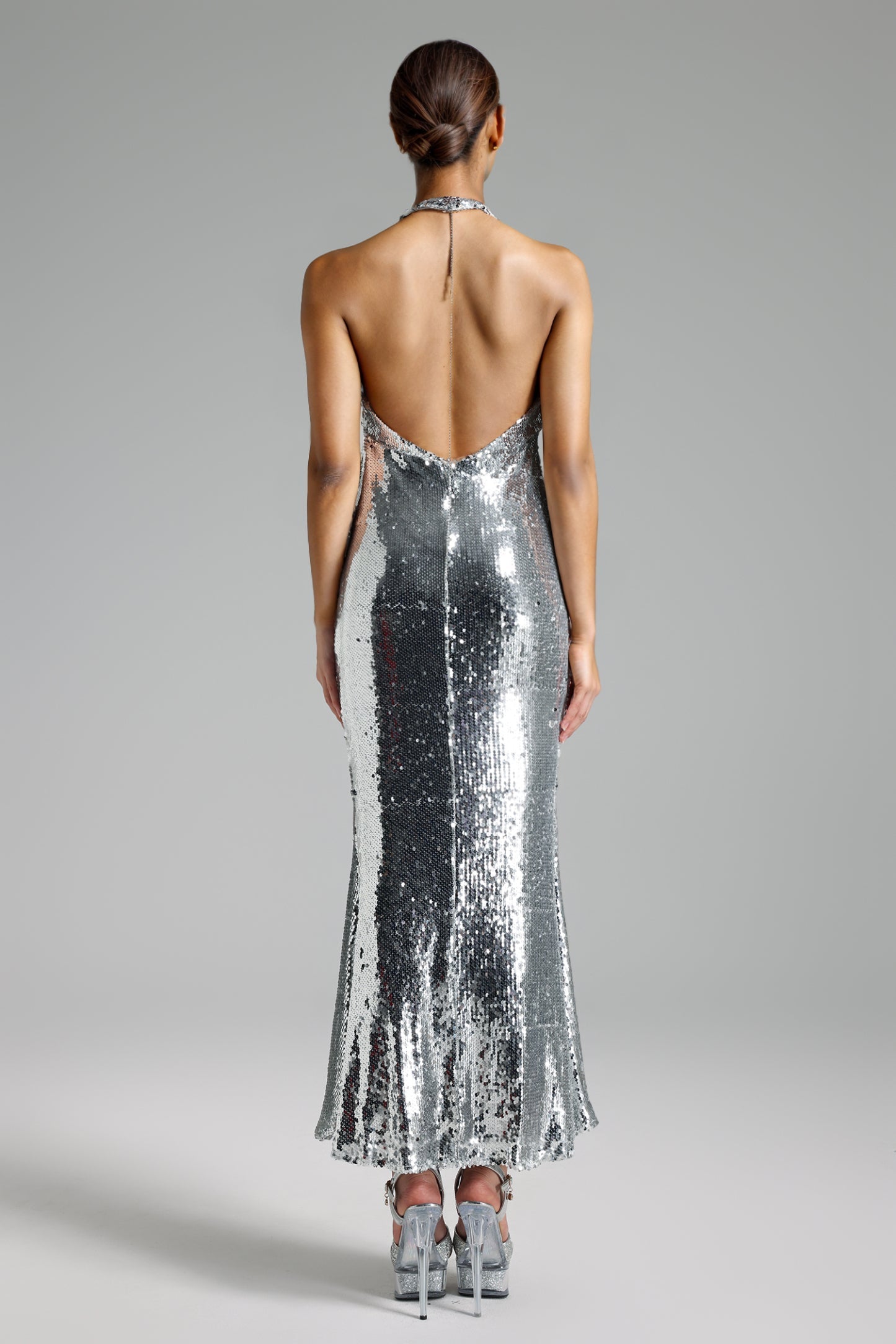 Mishra Halter Yaka Payetli Elbise, ışıltılı davetlerin yıldızı olmanız için tasarlandı. Özel üretim bu elbise, halter yaka kesimi ve tümüyle payetli detayları ile göz kamaştırıcı bir zarafet sunar. Modelimiz S beden giymekte ve ürün gerçek beden ölçülerine uygun olarak dikilmiştir; bu nedenle en iyi uyumu sağlamak için lütfen beden tablomuza göz atın.